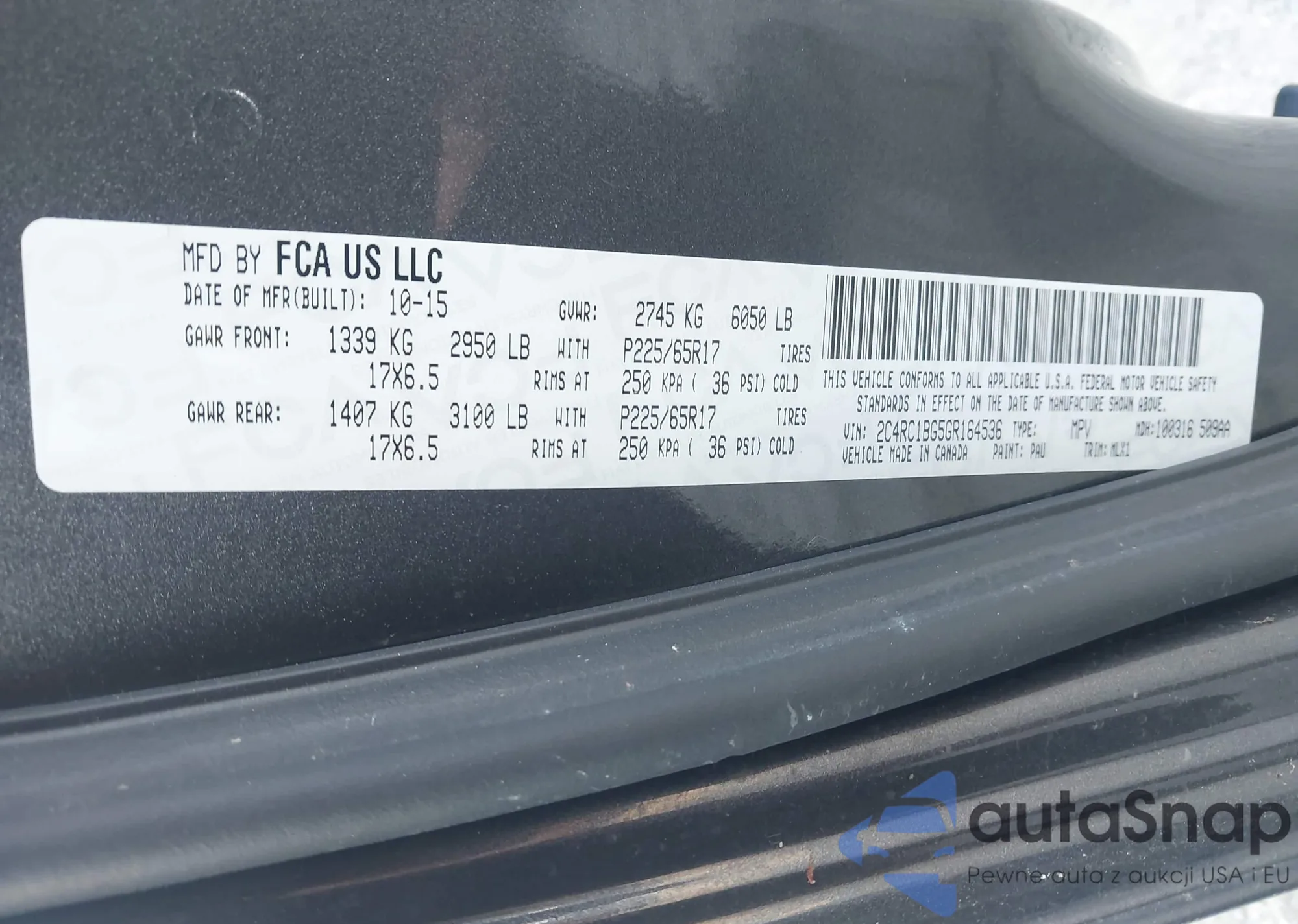 Samochód Chrysler Town & Country 2016 (VIN 2C4RC1BG5GR164536) sprzedaje go niezweryfikowany sprzedawca. Zalecamy raport Carfax i potwierdzenie możliwości rejestracji pojazdu przed zakupem.