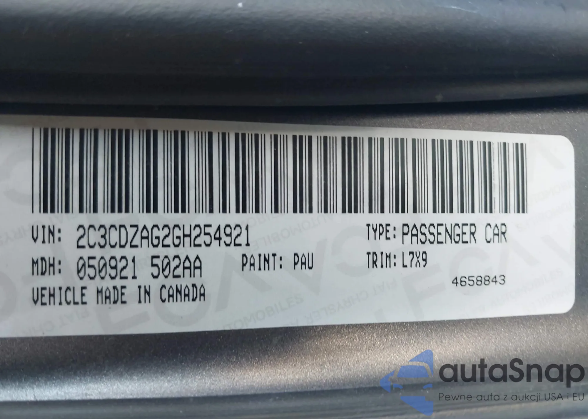 • VIN: 2C3CDZAG2GH254921