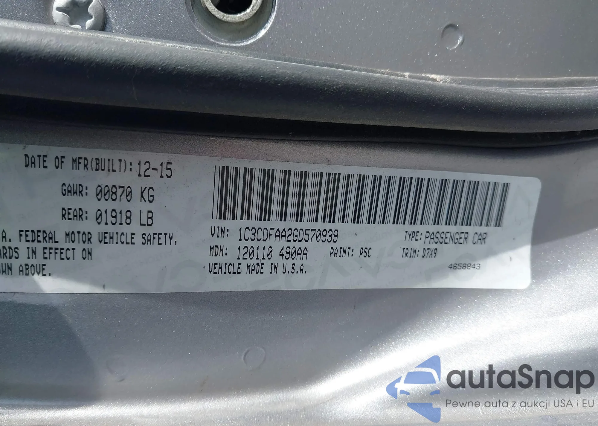 VIN: 1C3CDFAA2GD570939