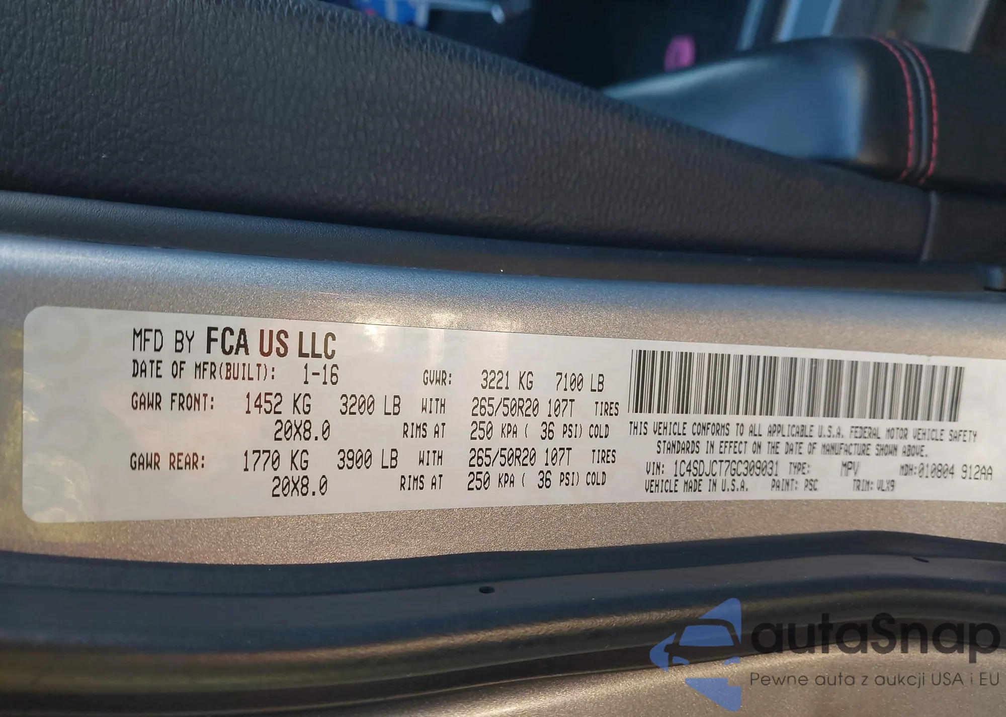 VIN: 1C4SDJCT7GC309031