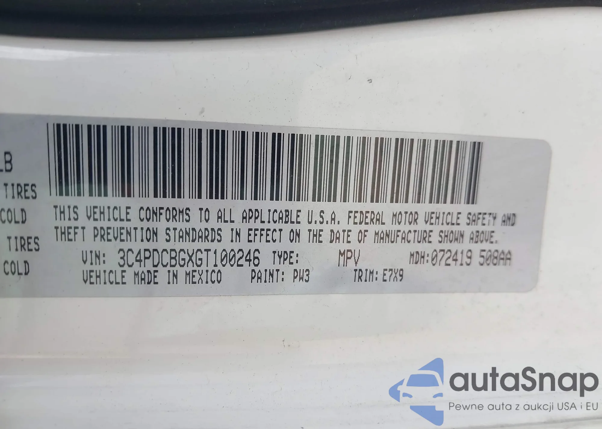 Samochód Dodge Journey 2016 (VIN 3C4PDCBGXGT100246) sprzedaje go niezweryfikowany sprzedawca. Zalecamy raport Carfax i potwierdzenie możliwości rejestracji pojazdu przed zakupem.