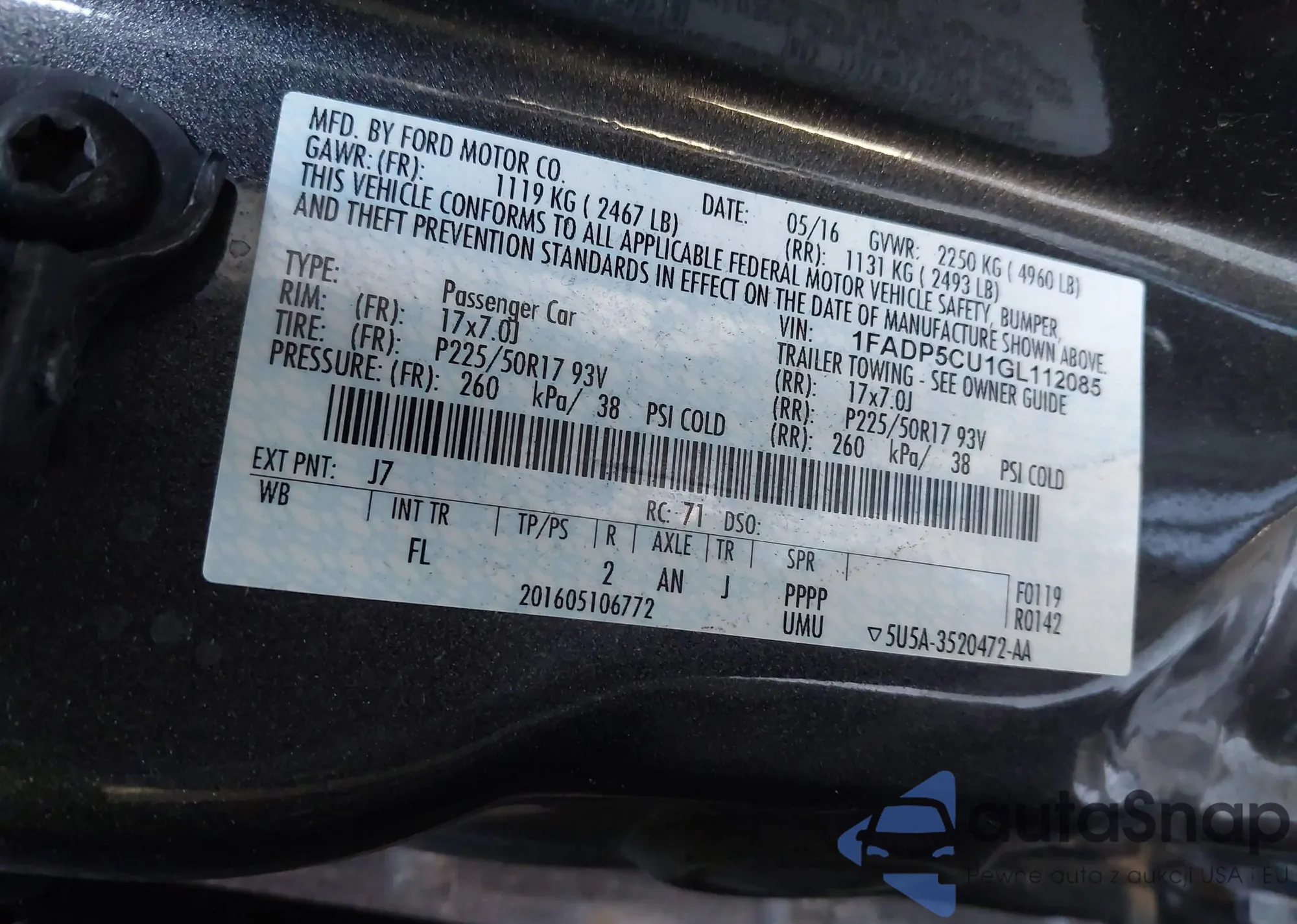 VIN: 1FADP5CU1GL112085