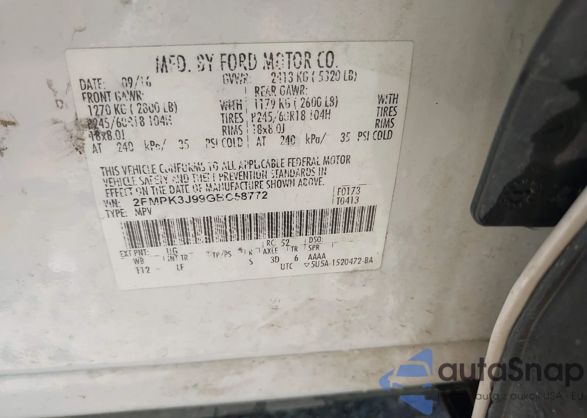 VIN: 2FMPK3J99GBC58772