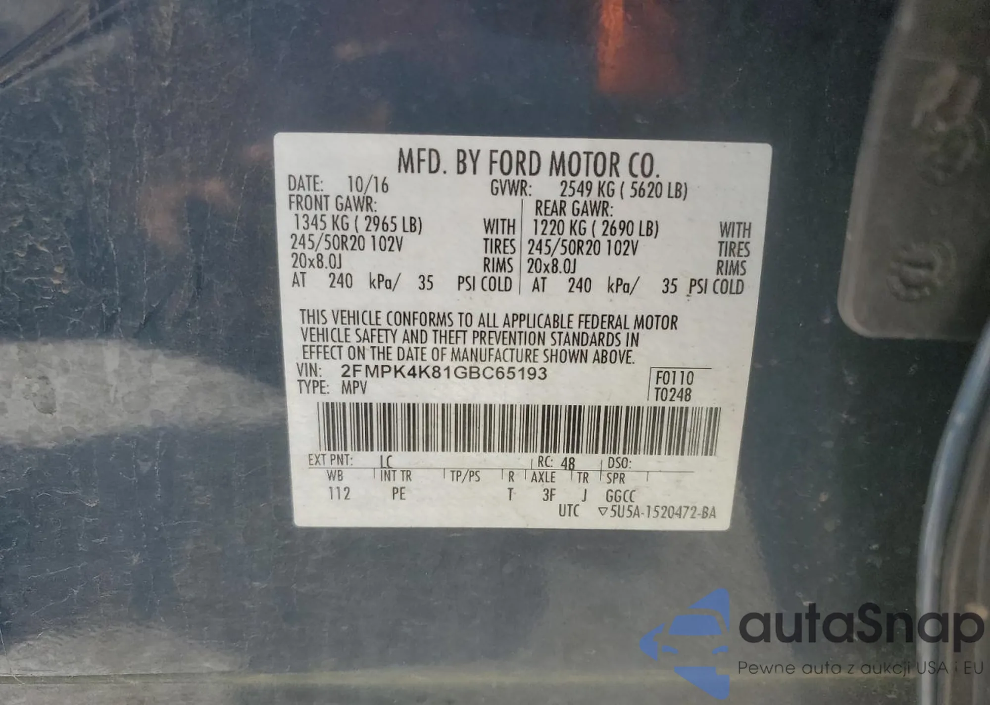 VIN: 2FMPK4K81GBC65193