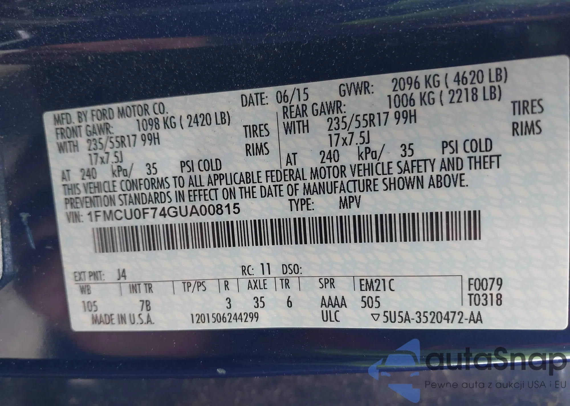VIN: 1FMCU0F74GUA00815