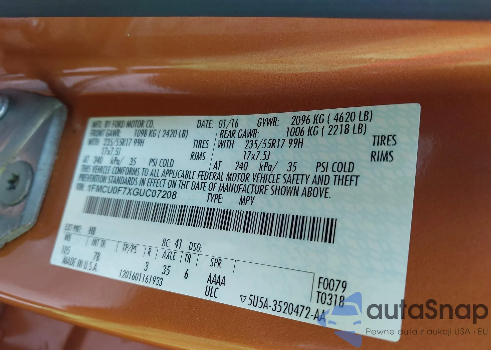 VIN: 1FMCU0F7XGUC07208