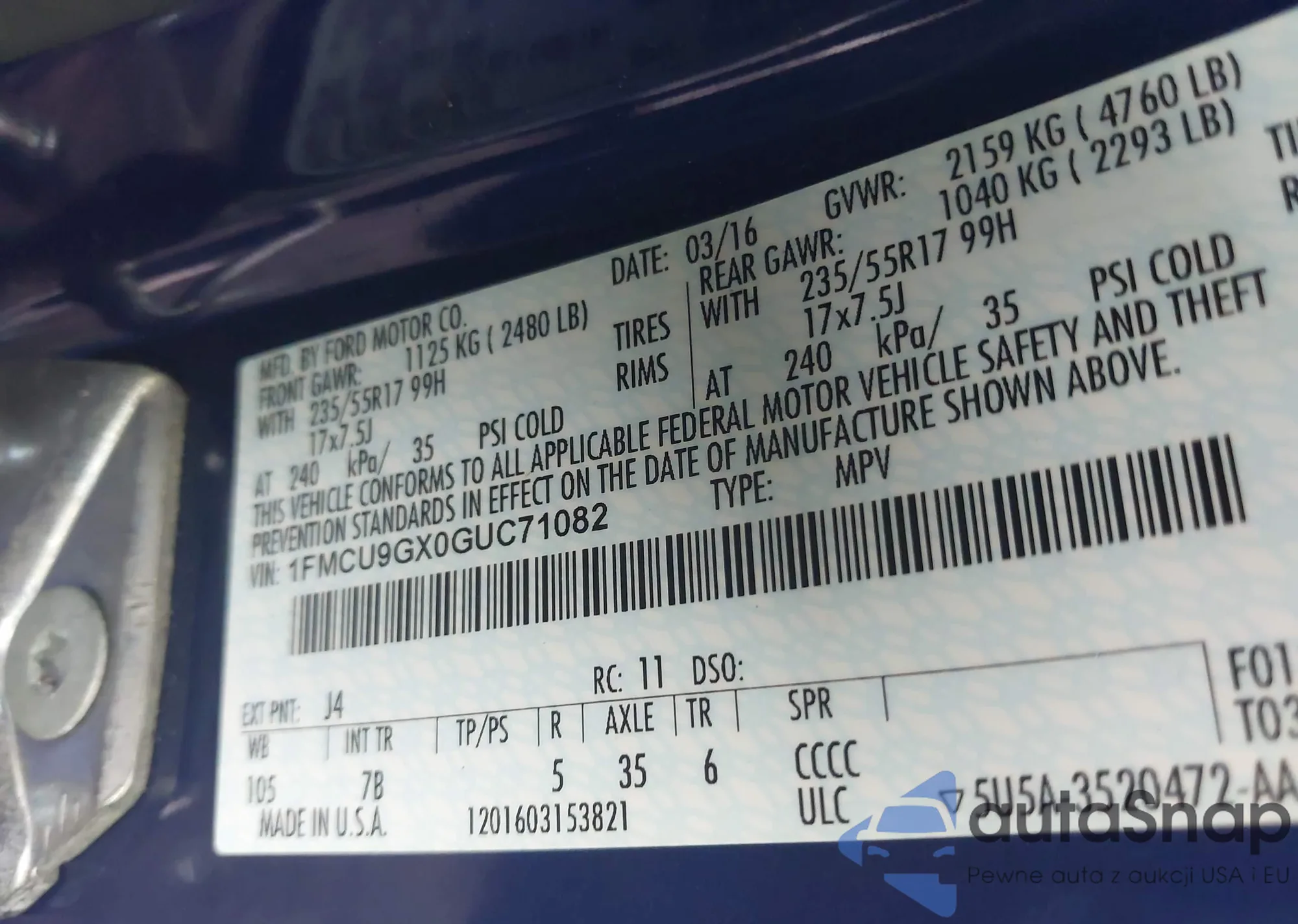 VIN: 1FMCU9GX0GUC71082
