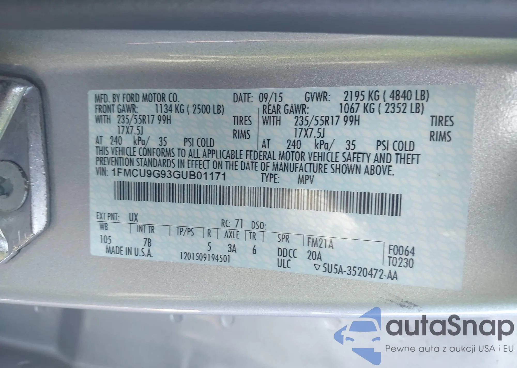 VIN: 1FMCU9G93GUB01171