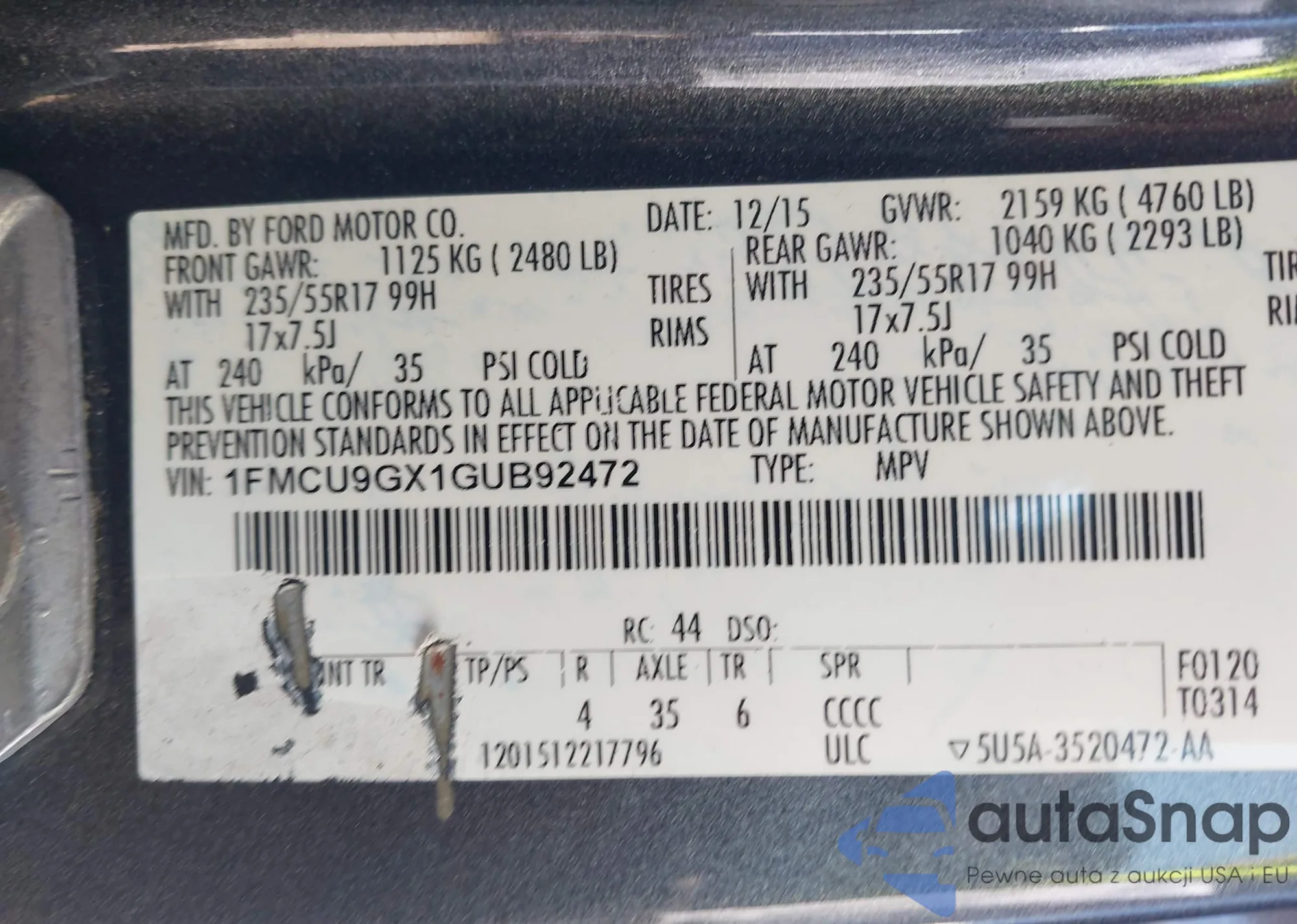 VIN: 1FMCU9GX1GUB92472