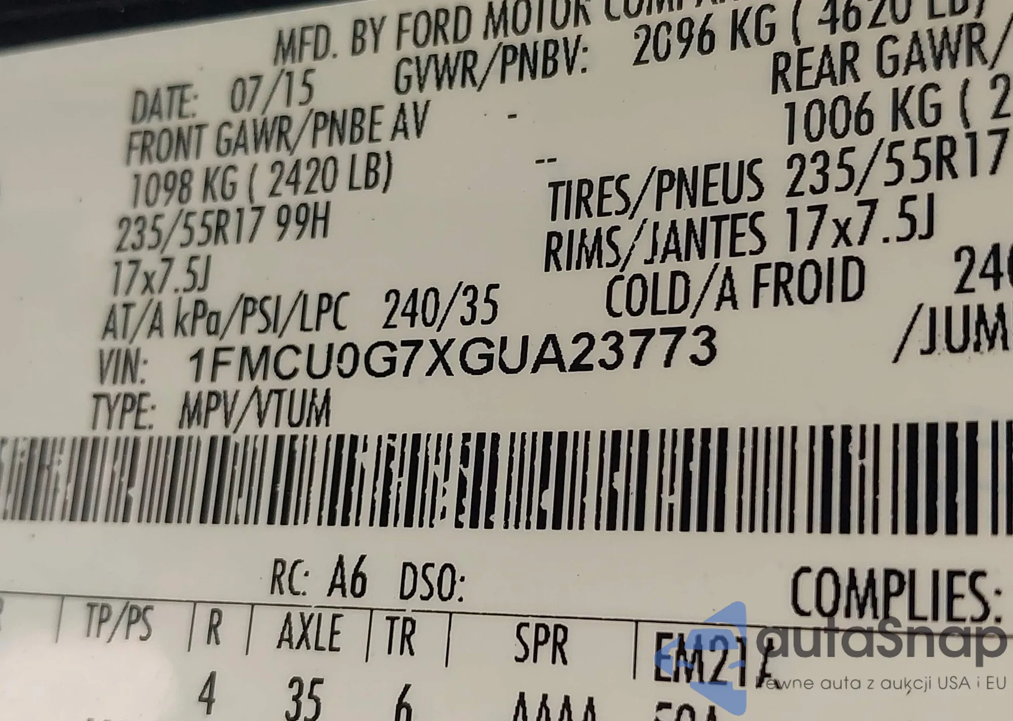 VIN: 1FMCU0G7XGUA23773