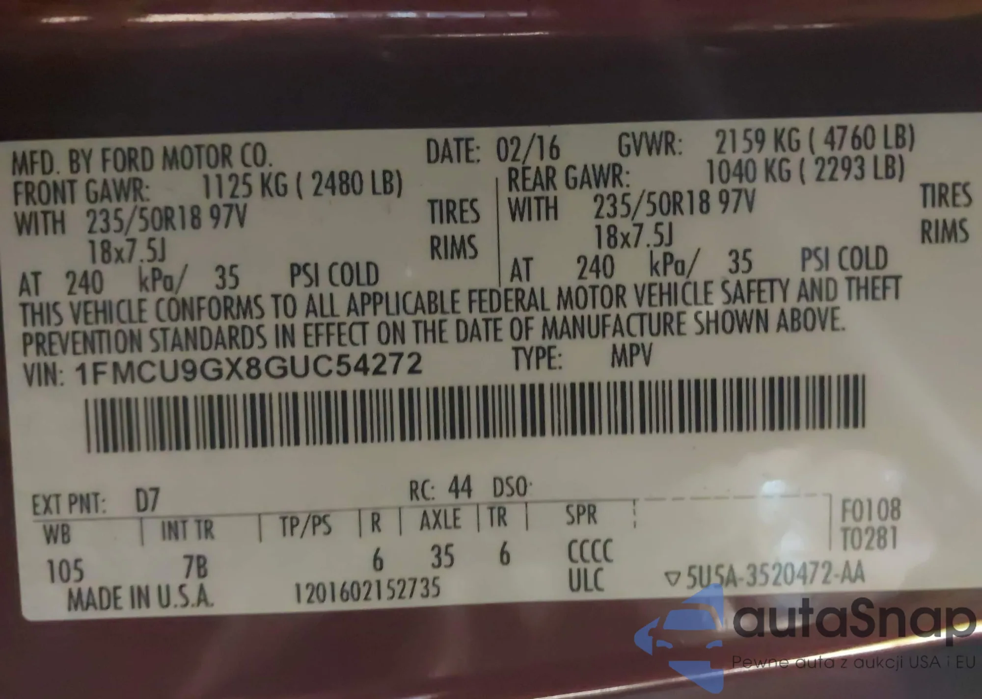 VIN: 1FMCU9GX8GUC54272