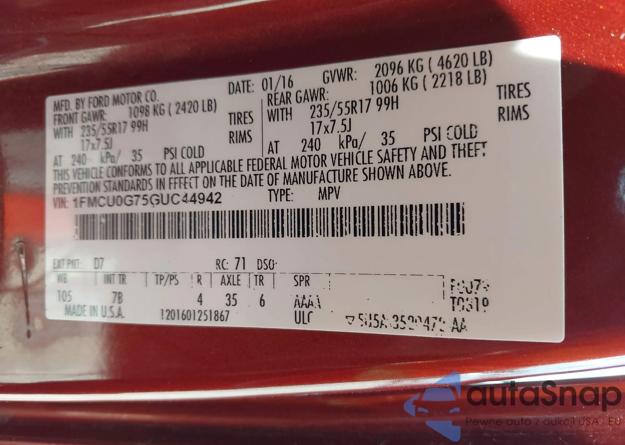 VIN: 1FMCU0G75GUC44942