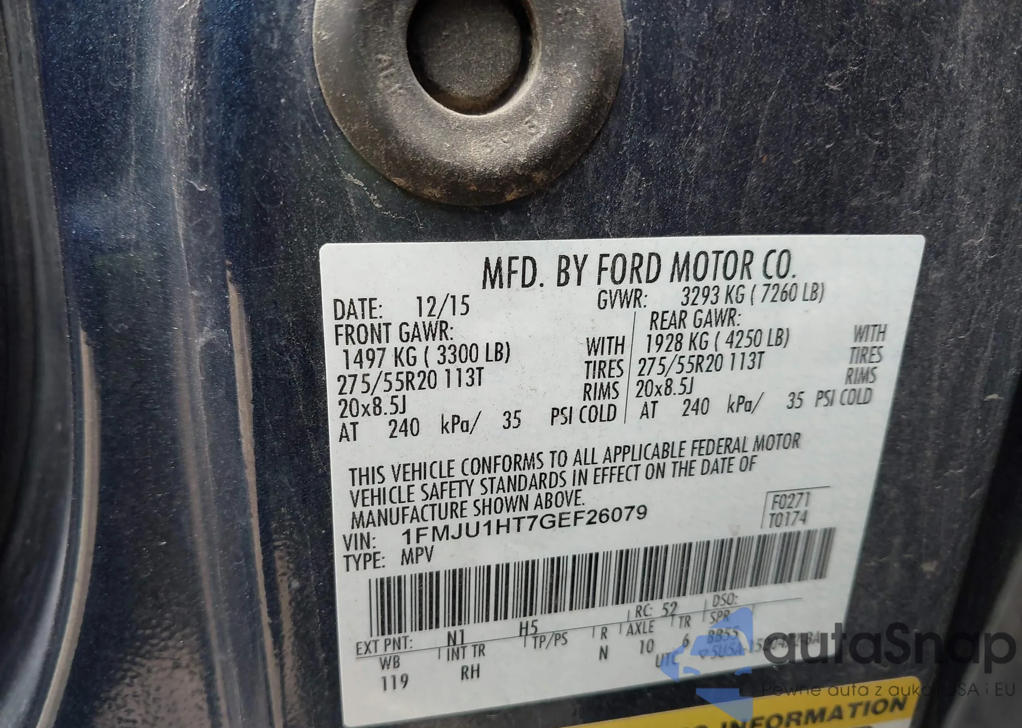 Samochód Ford Expedition 2016 (VIN 1FMJU1HT7GEF26079) nie był wcześniej licytowany. Dokumenty są czyste, przebieg odpowiada lub jest niższy niż średnia rynku. Sprzedaje go firma ubezpieczeniowa – polecamy zakup. Dostawa do portu zajmie ok. 6–8 tygodni.