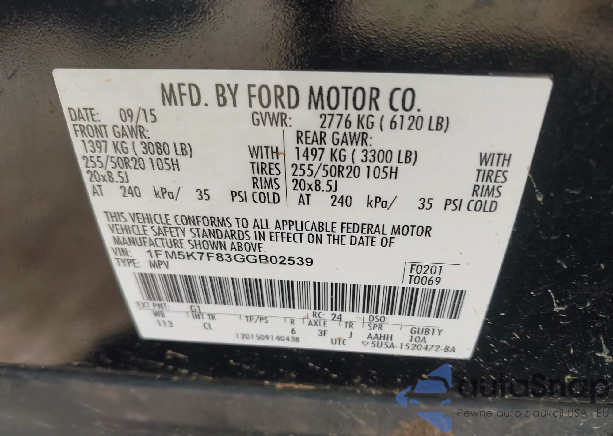 VIN: 1FM5K7F83GGB02539