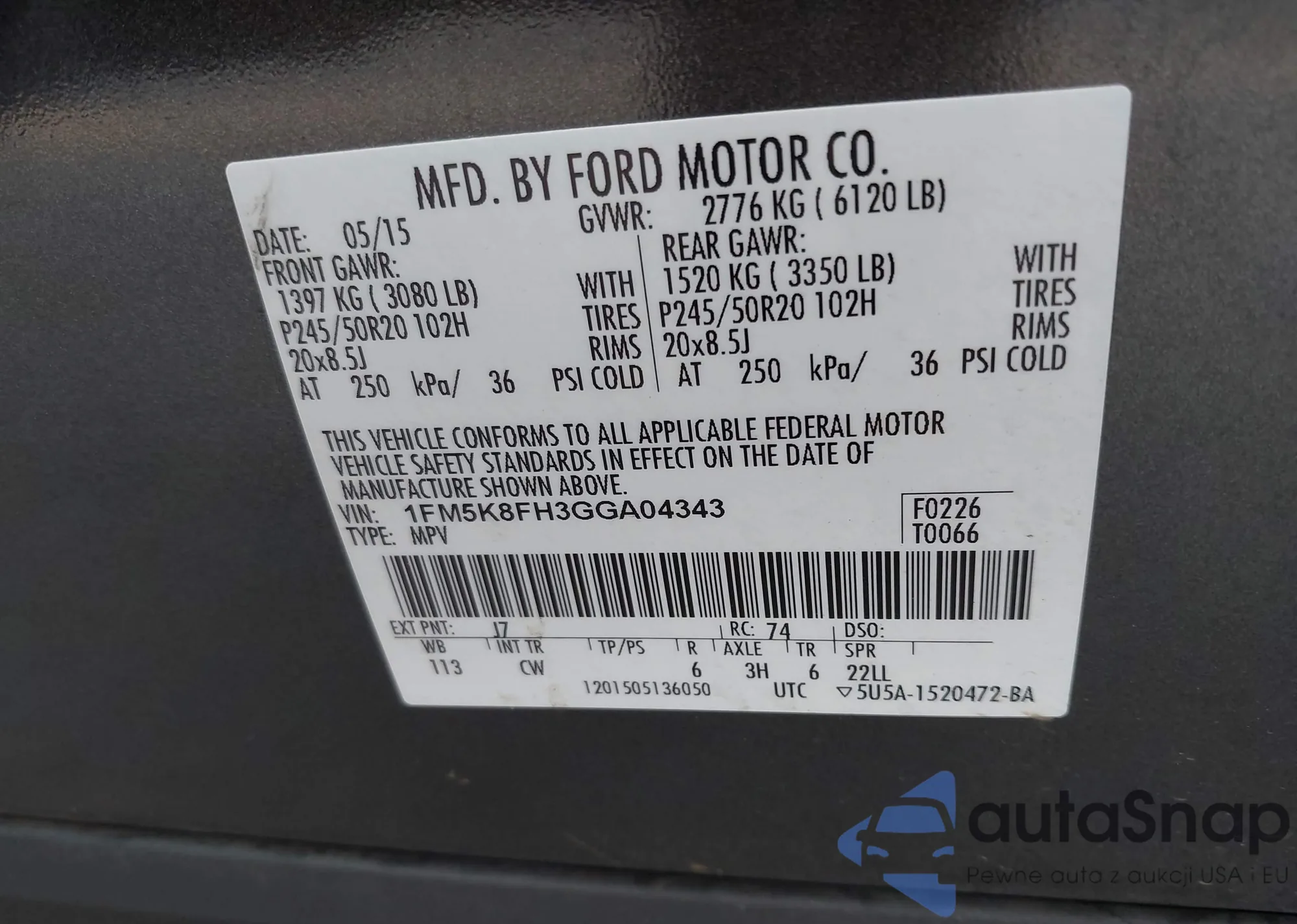 VIN: 1FM5K8FH3GGA04343
