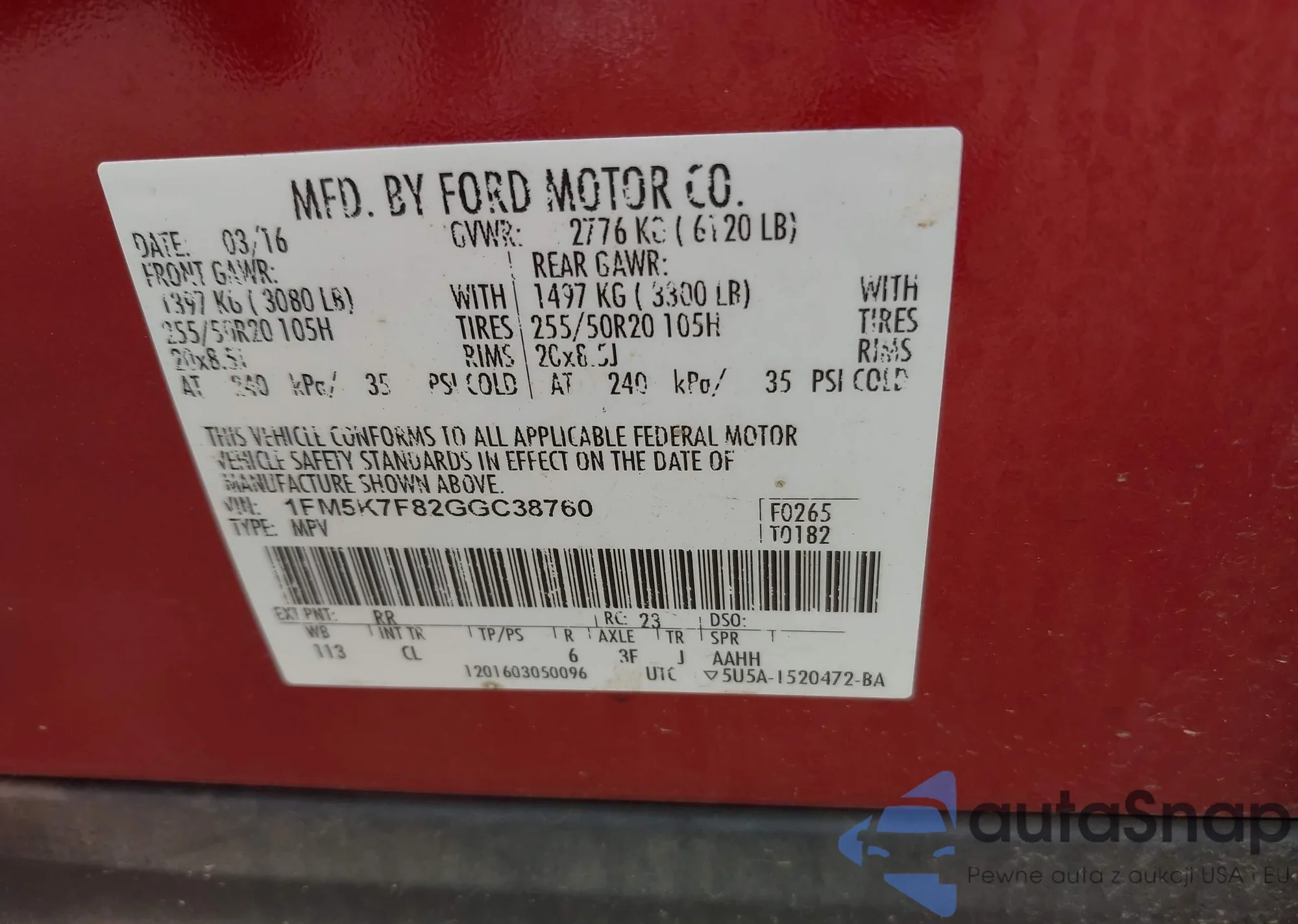 VIN: 1FM5K7F82GGC38760