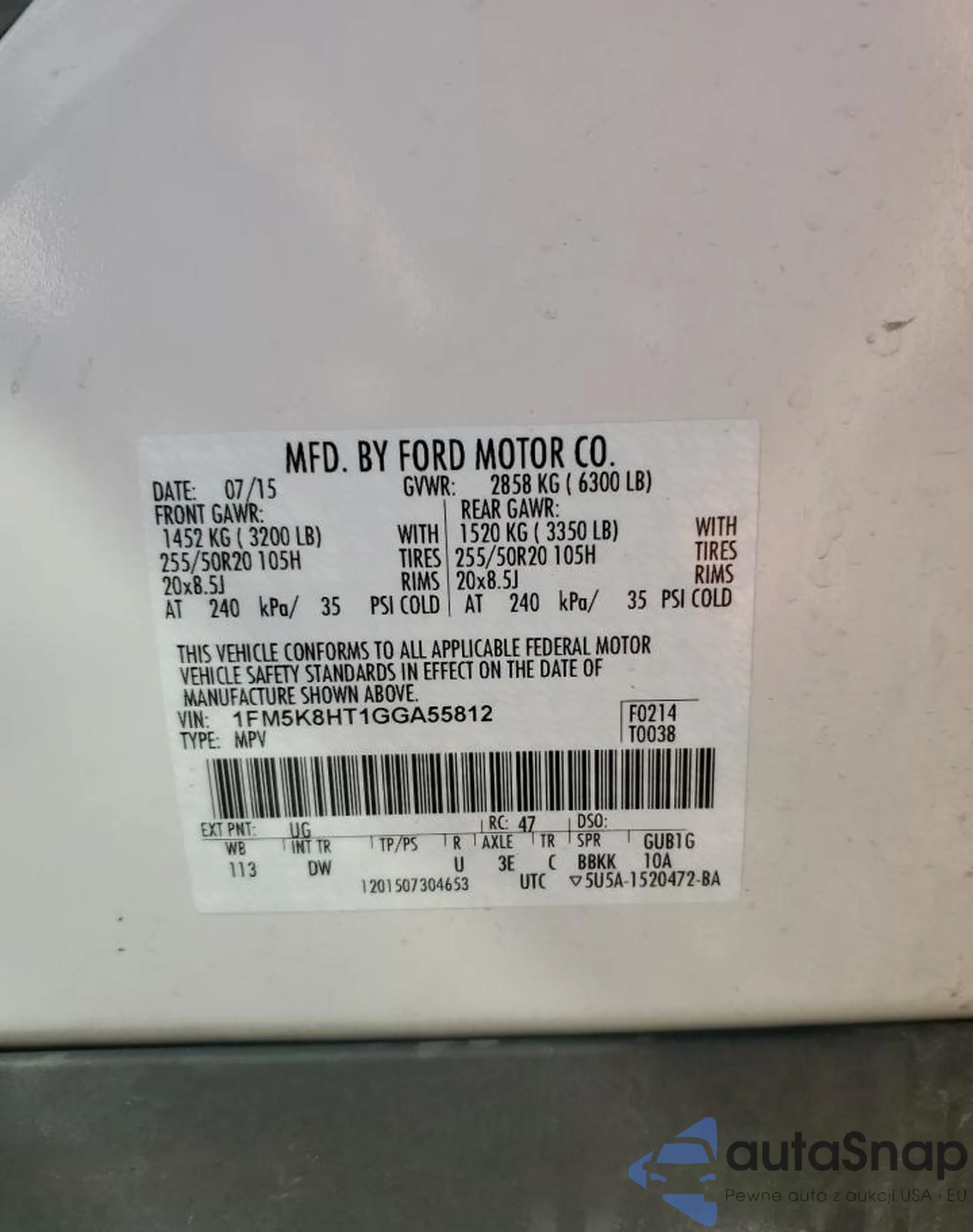 VIN: 1FM5K8HT1GGA55812
