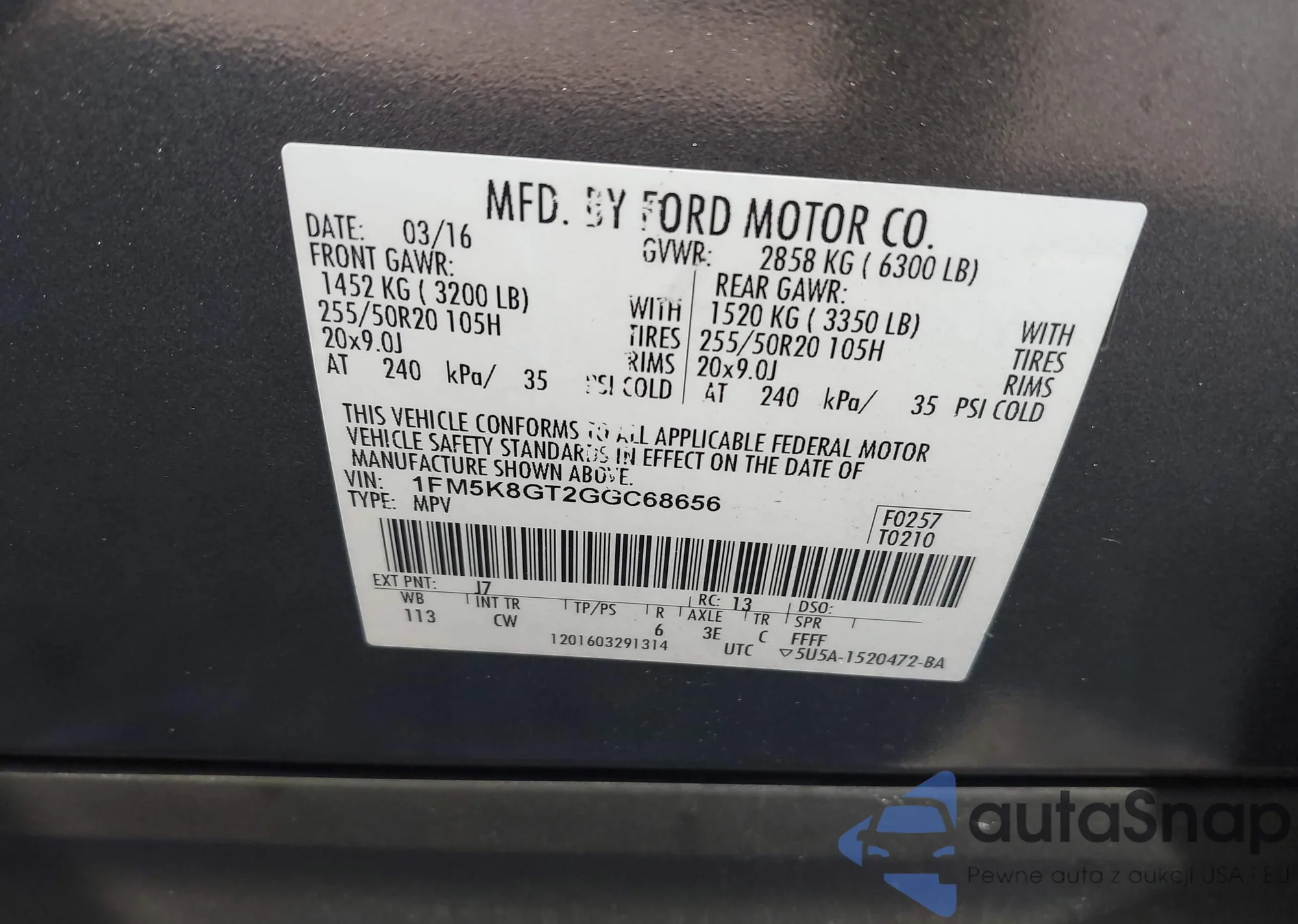 VIN: 1FM5K8GT2GGC68656