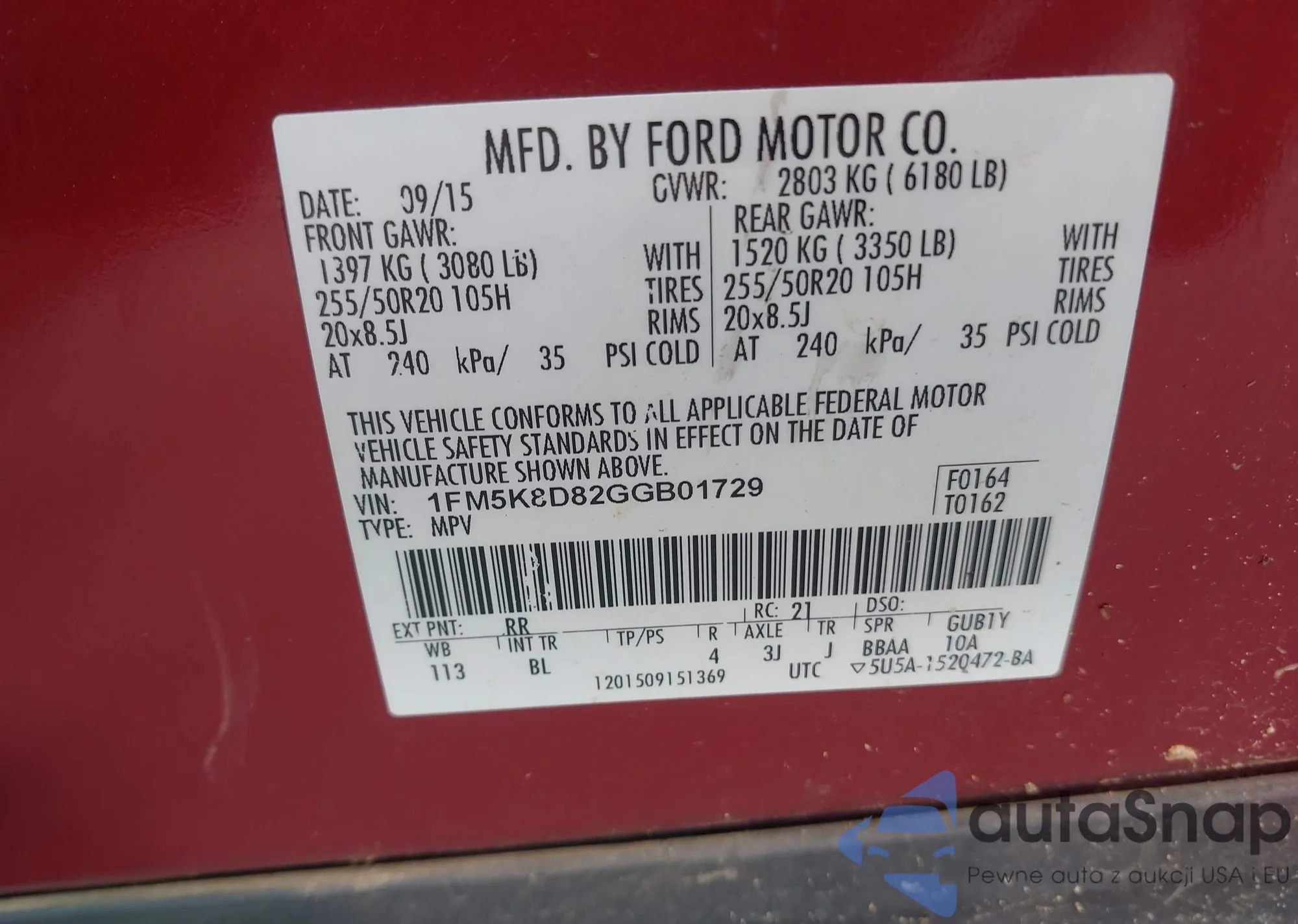 VIN: 1FM5K8D82GGB01729