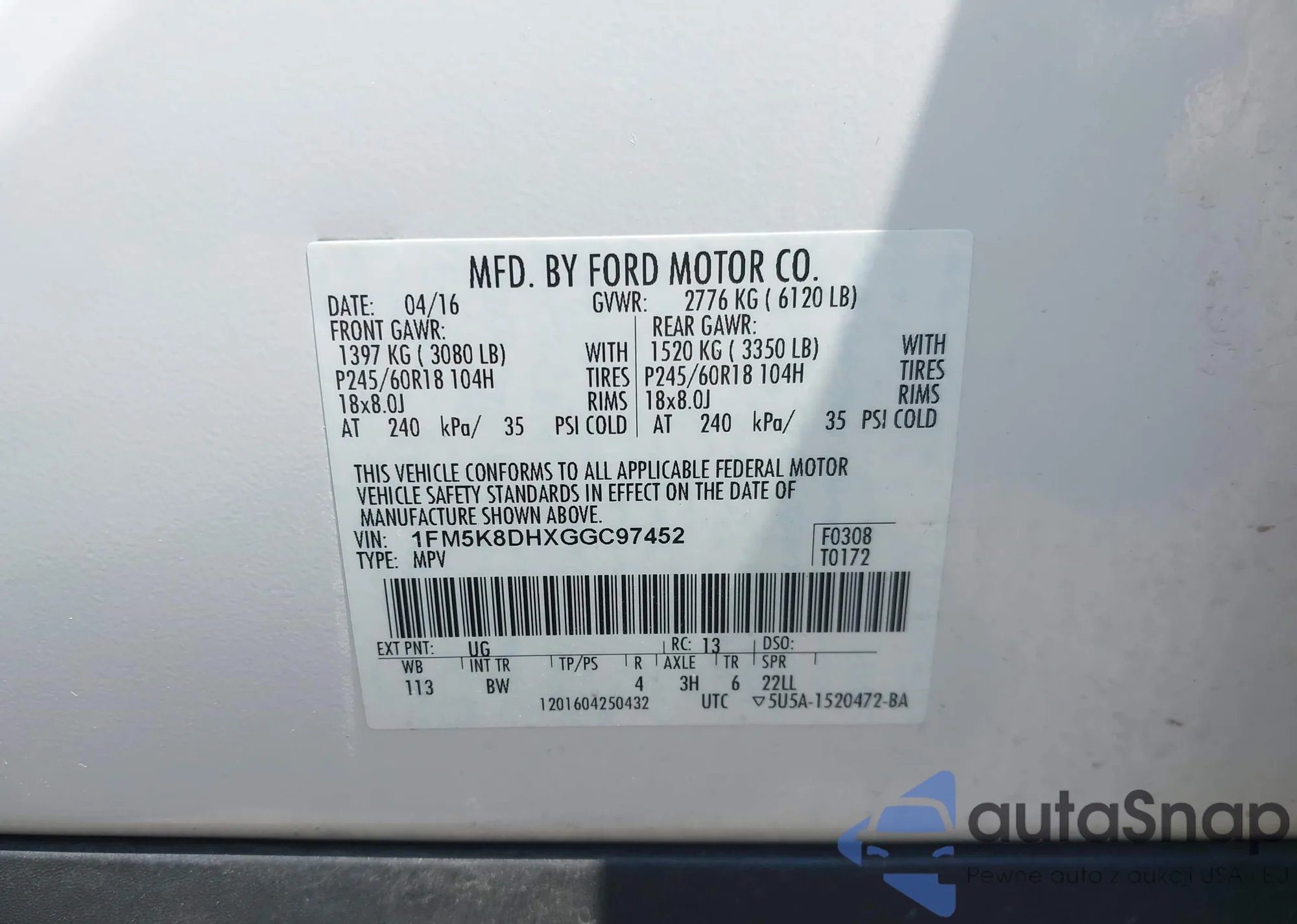 VIN: 1FM5K8DHXGGC97452