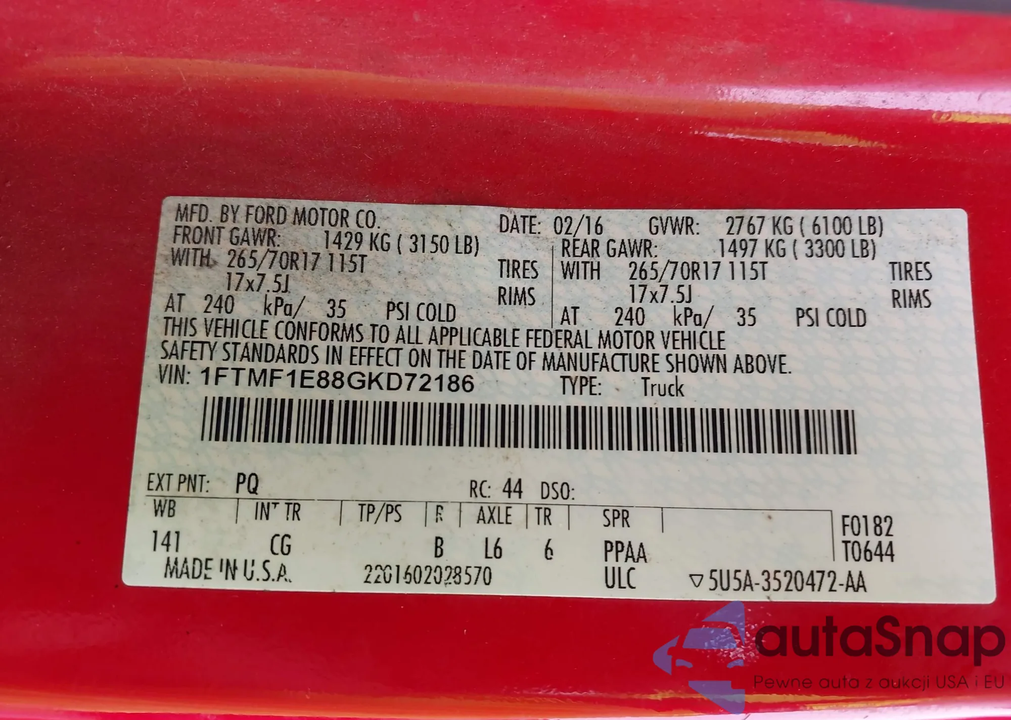 Marka: 2016 Ford F-150 Xl