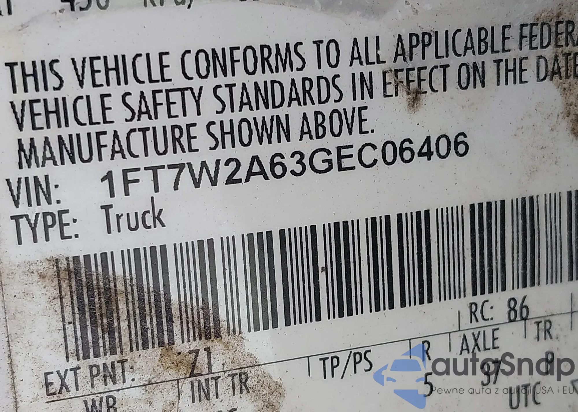 VIN: 1FT7W2A63GEC06406