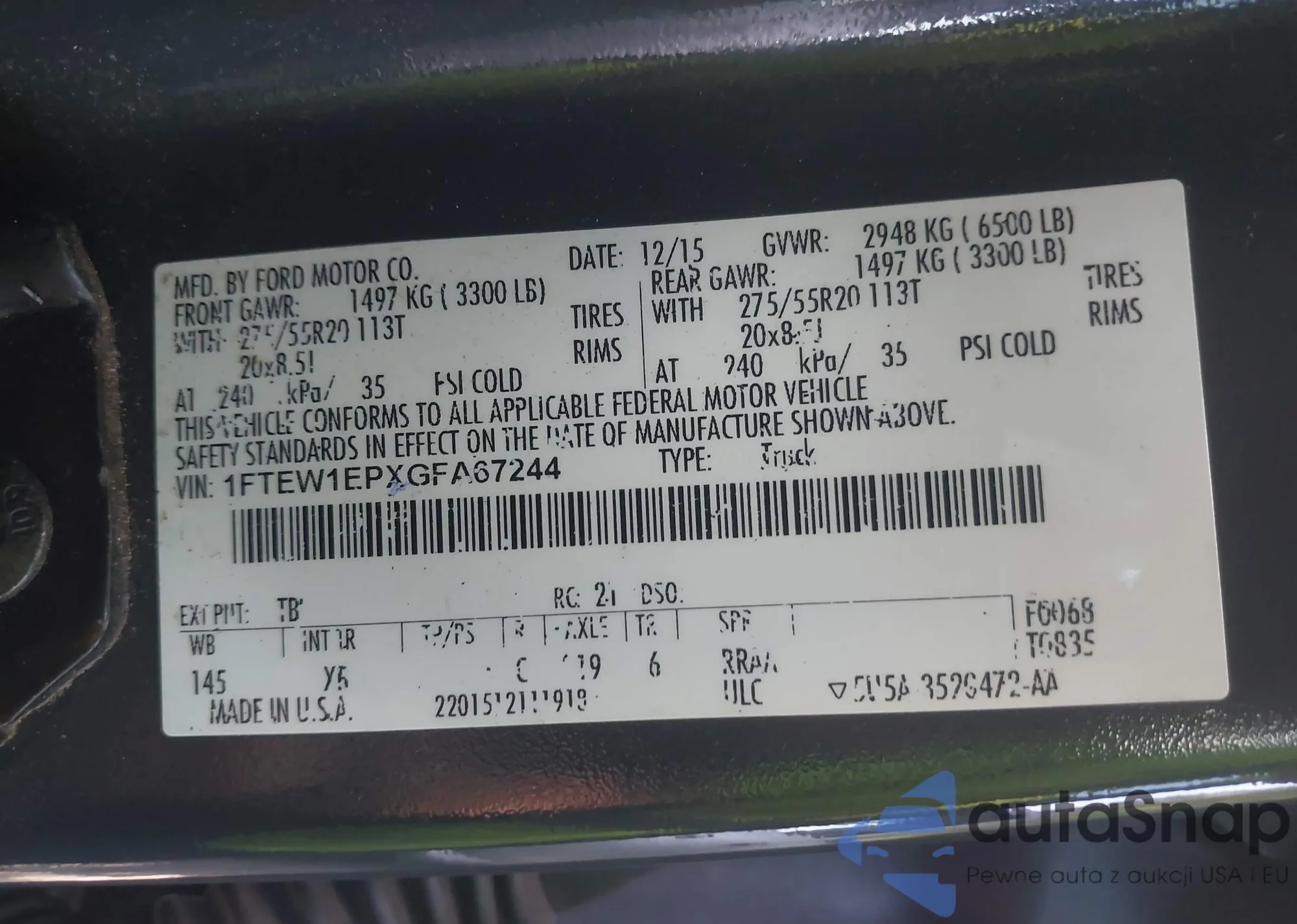 Ford F-150 2016 – Historia pojazdu (sprzedany na IAAI)