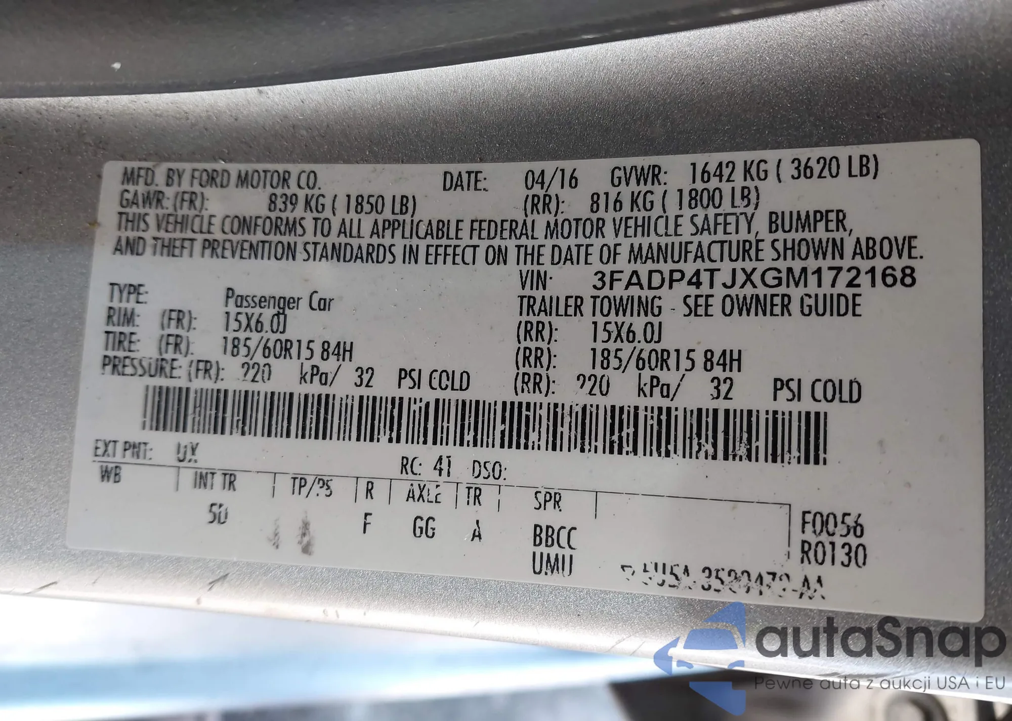 VIN: 3FADP4TJXGM172168
