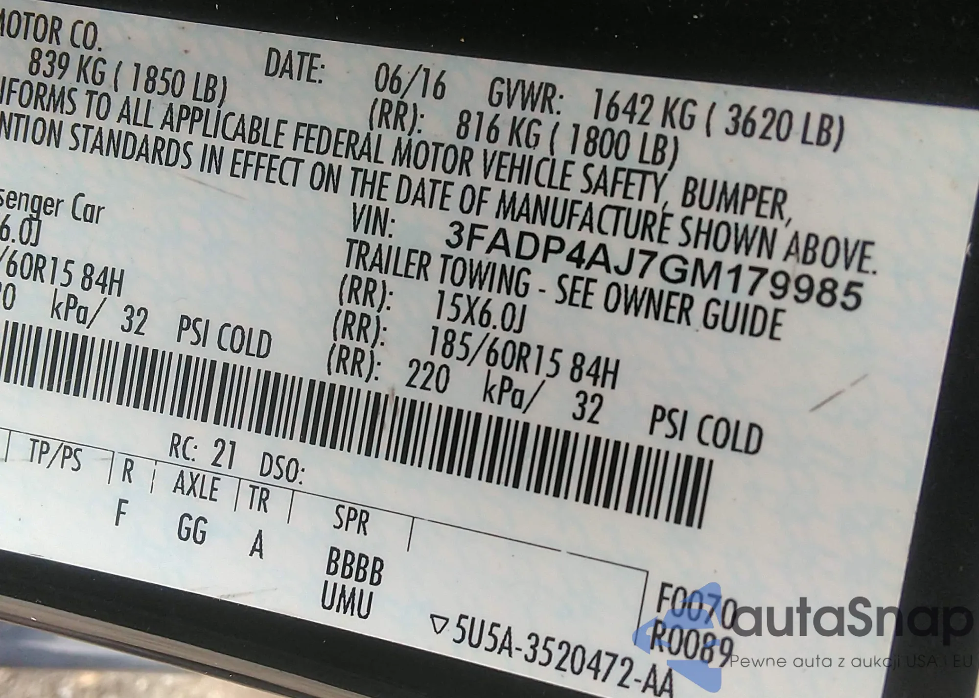 VIN: 3FADP4AJ7GM179985