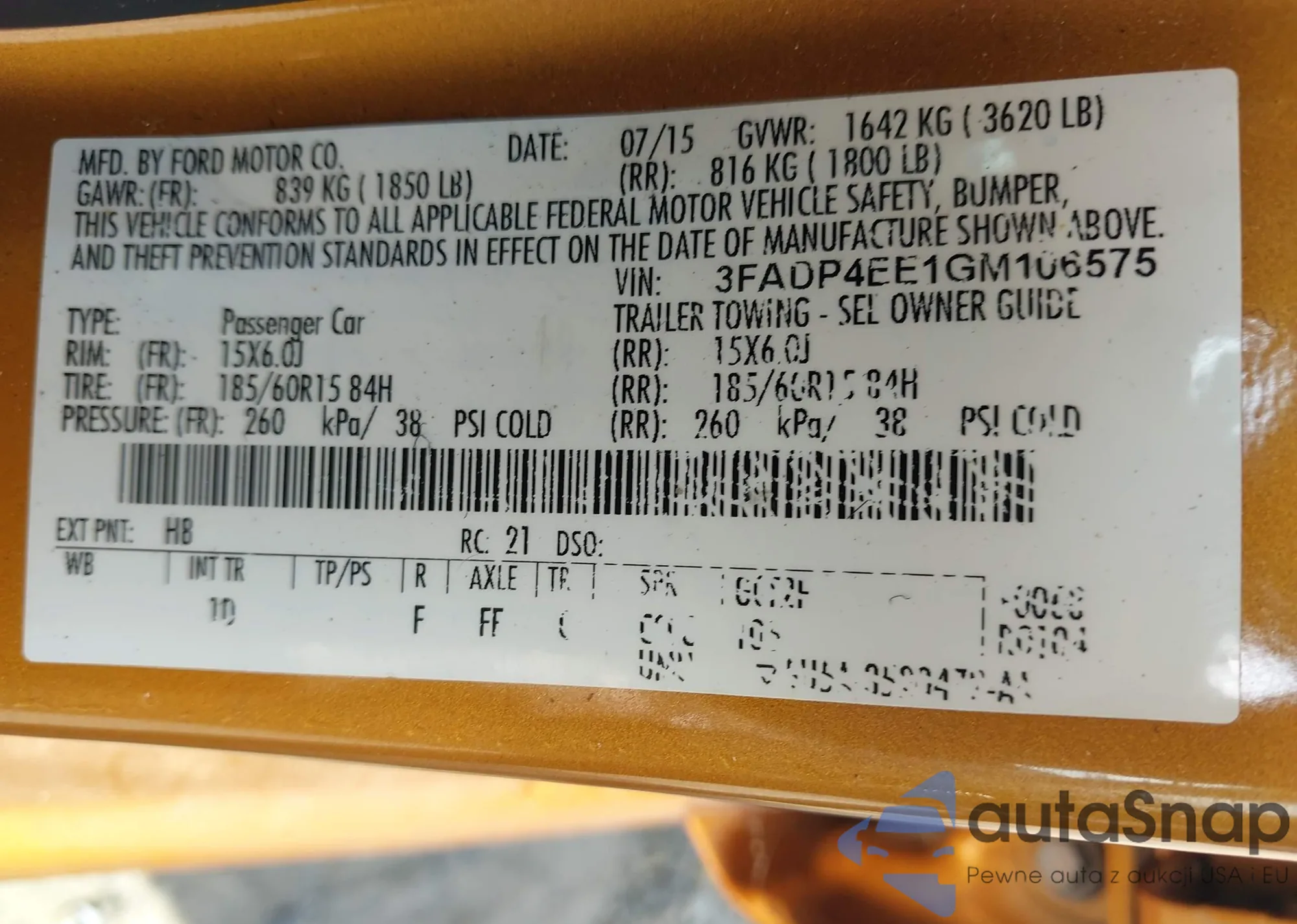 VIN: 3FADP4EE1GM106575