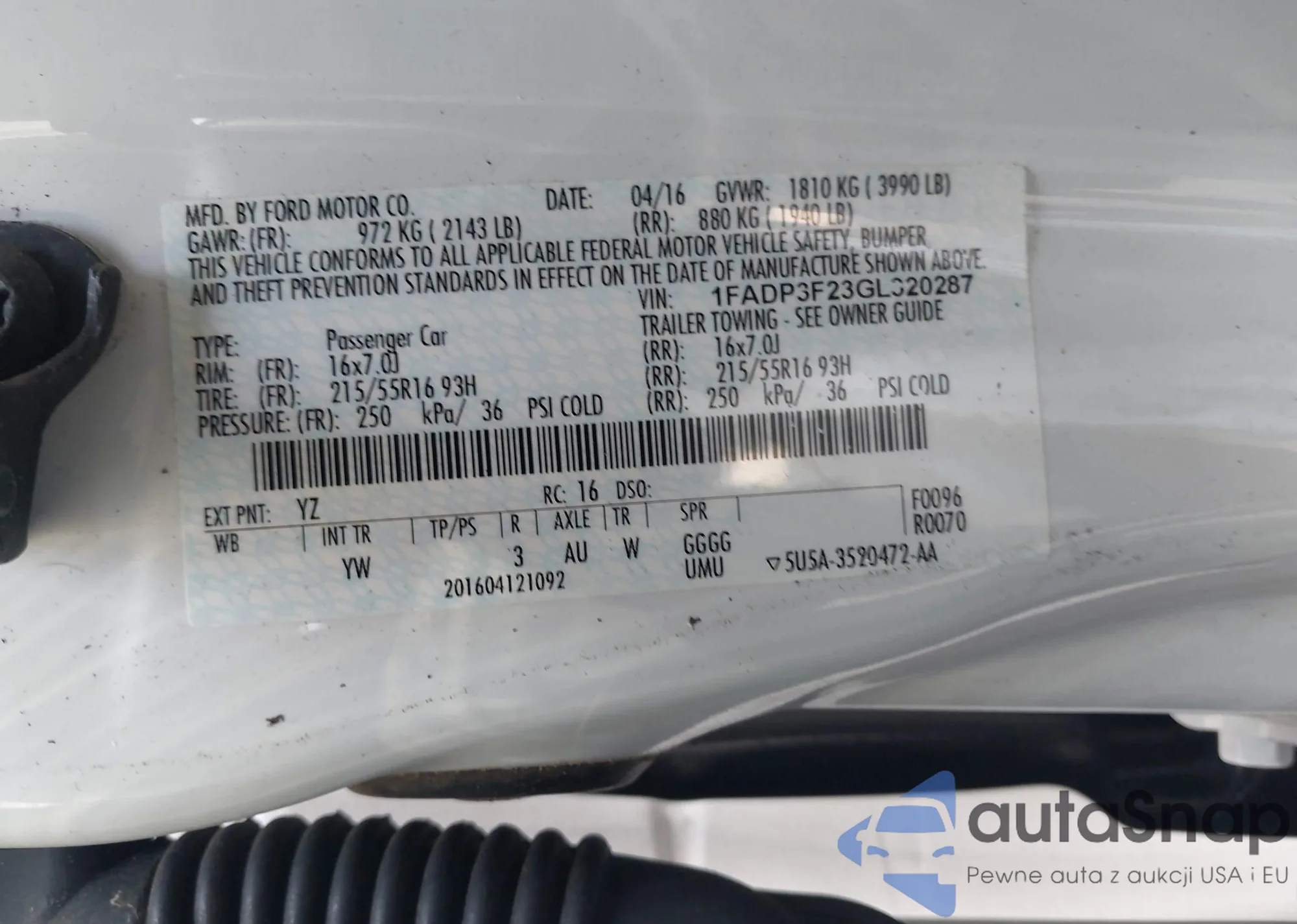 VIN: 1FADP3F23GL320287