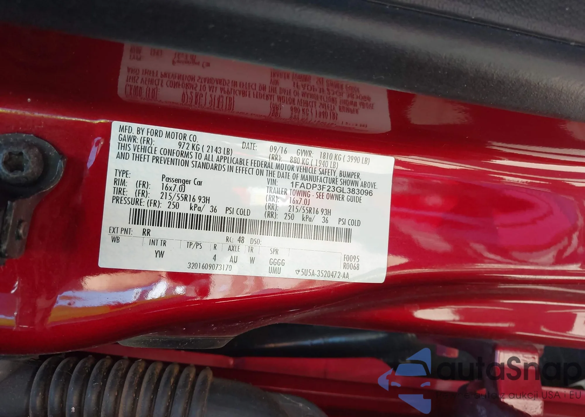 VIN: 1FADP3F23GL383096