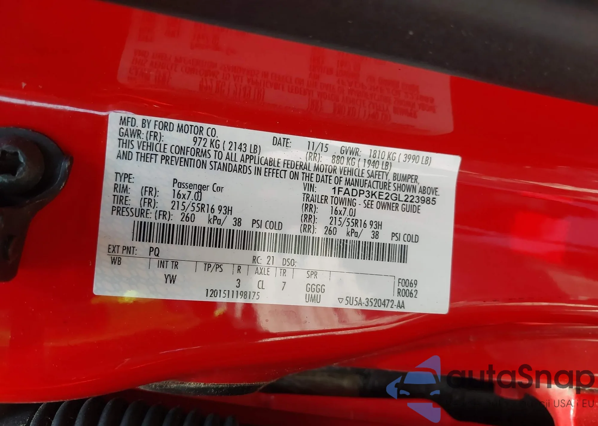 VIN: 1FADP3KE2GL223985