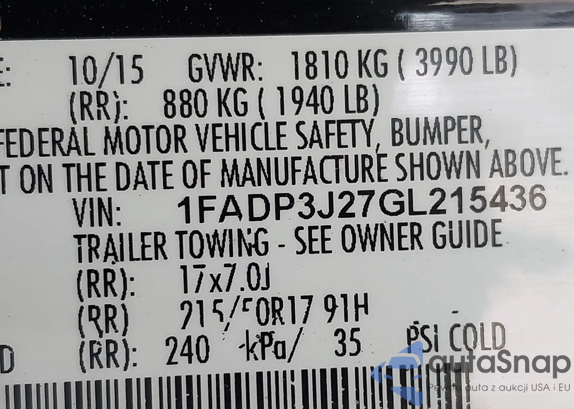 VIN: 1FADP3J27GL215436