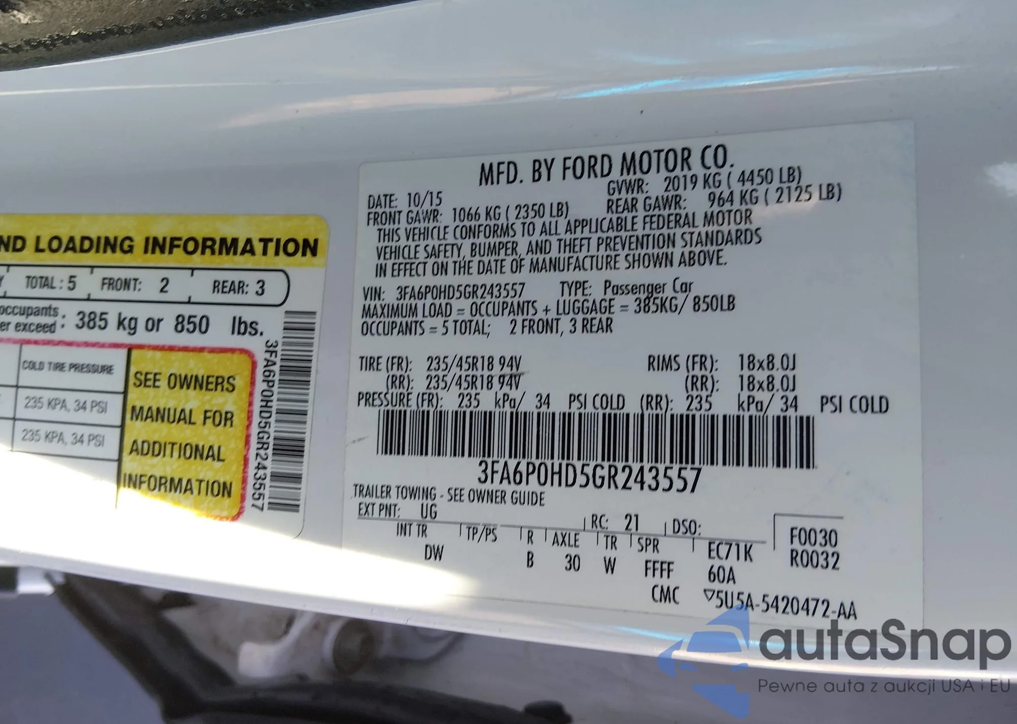 Samochód Ford Fusion 2016 (VIN 3FA6P0HD5GR243557) nie był wcześniej licytowany. Dokumenty są czyste, przebieg odpowiada lub jest niższy niż średnia rynku. Sprzedaje go firma ubezpieczeniowa – polecamy zakup. Dostawa do portu zajmie ok. 6–8 tygodni.