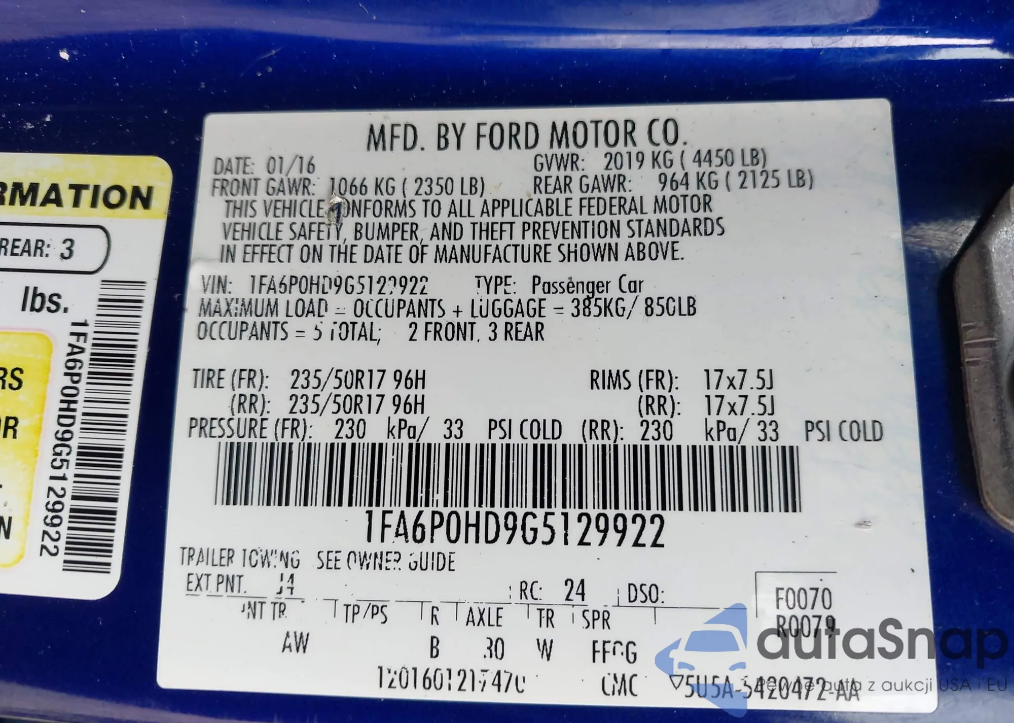 VIN: 1FA6P0HD9G5129922