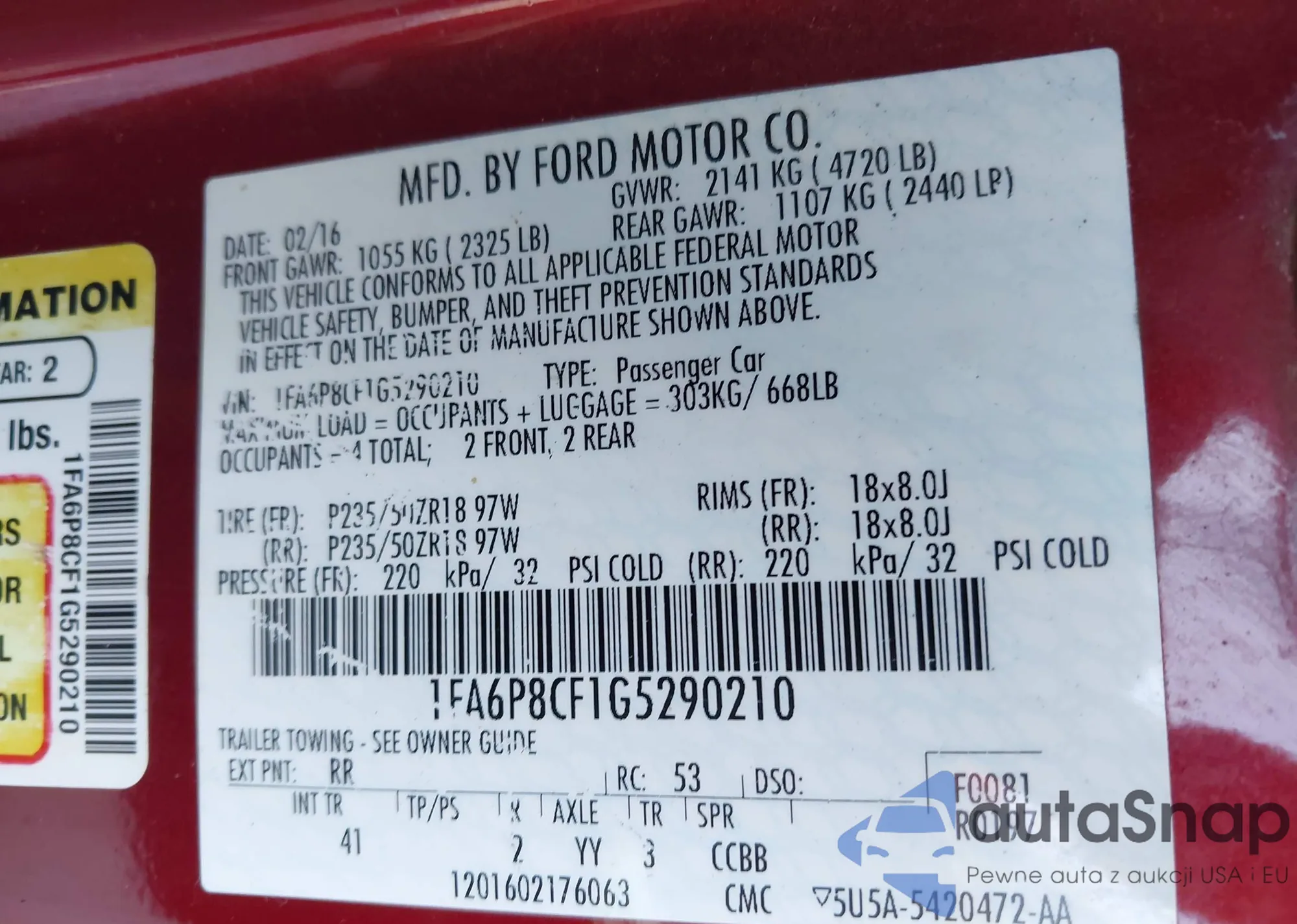VIN: 1FA6P8CF1G5290210