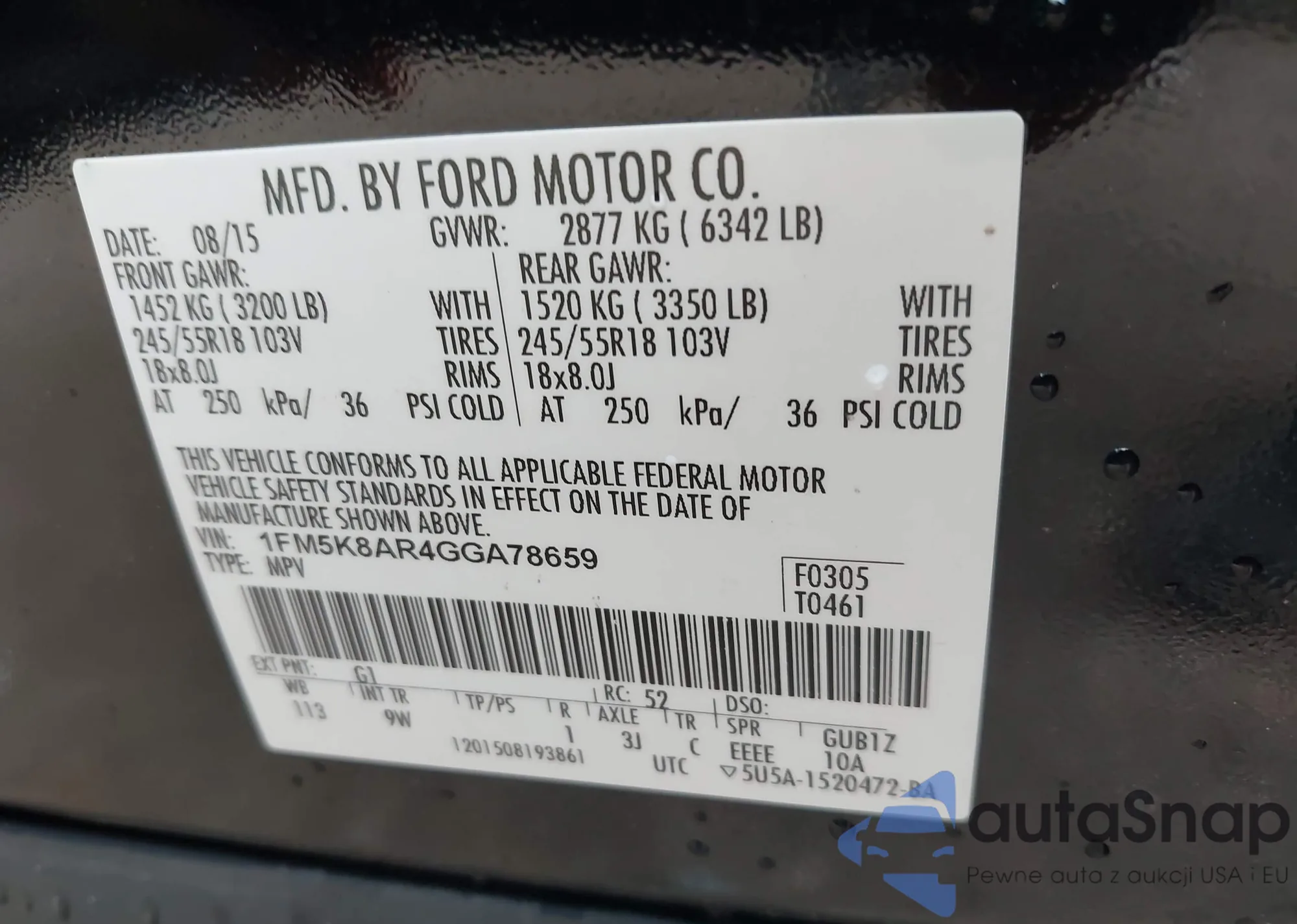 VIN: 1FM5K8AR4GGA78659