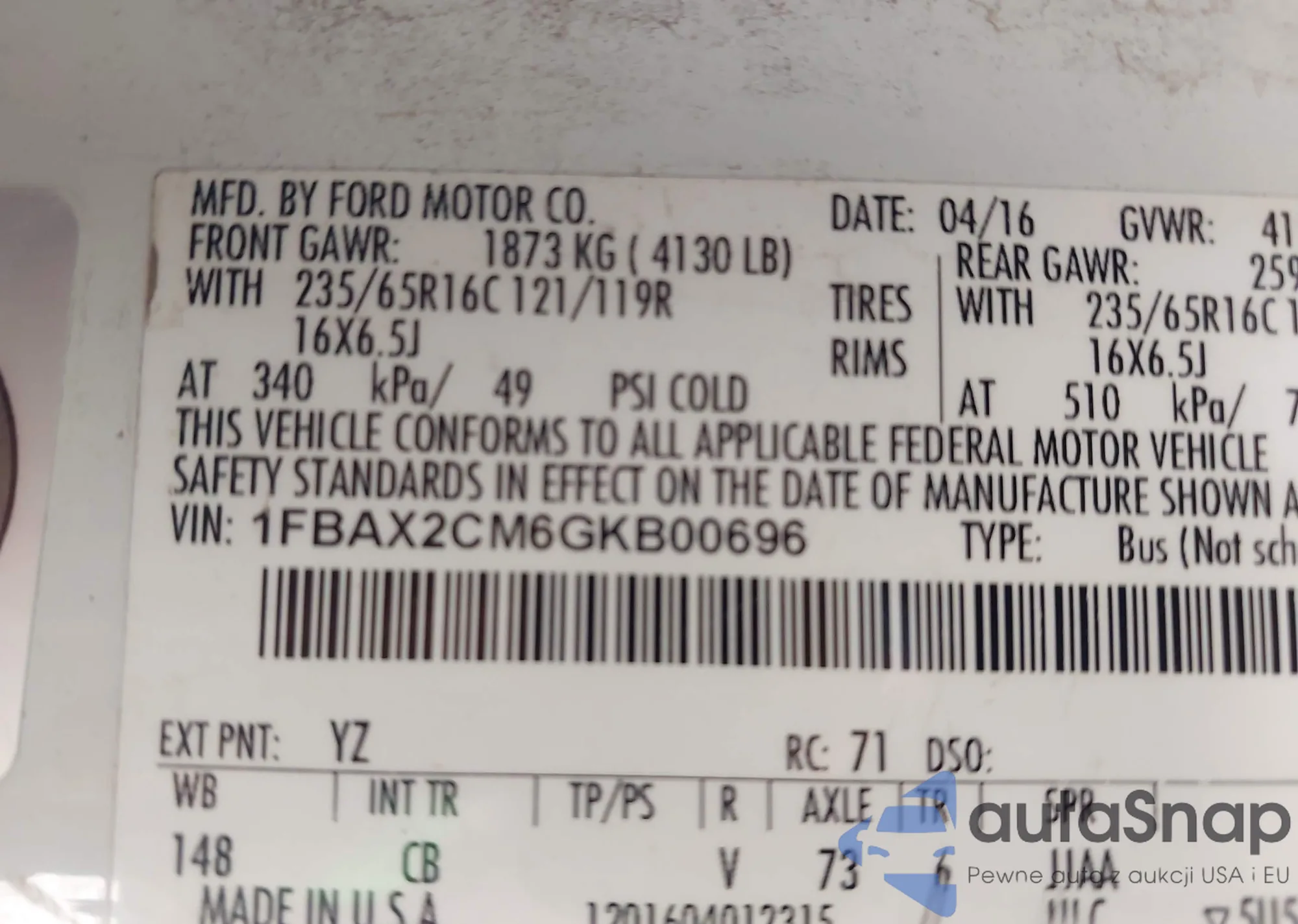 • VIN: 1FBAX2CM6GKB00696