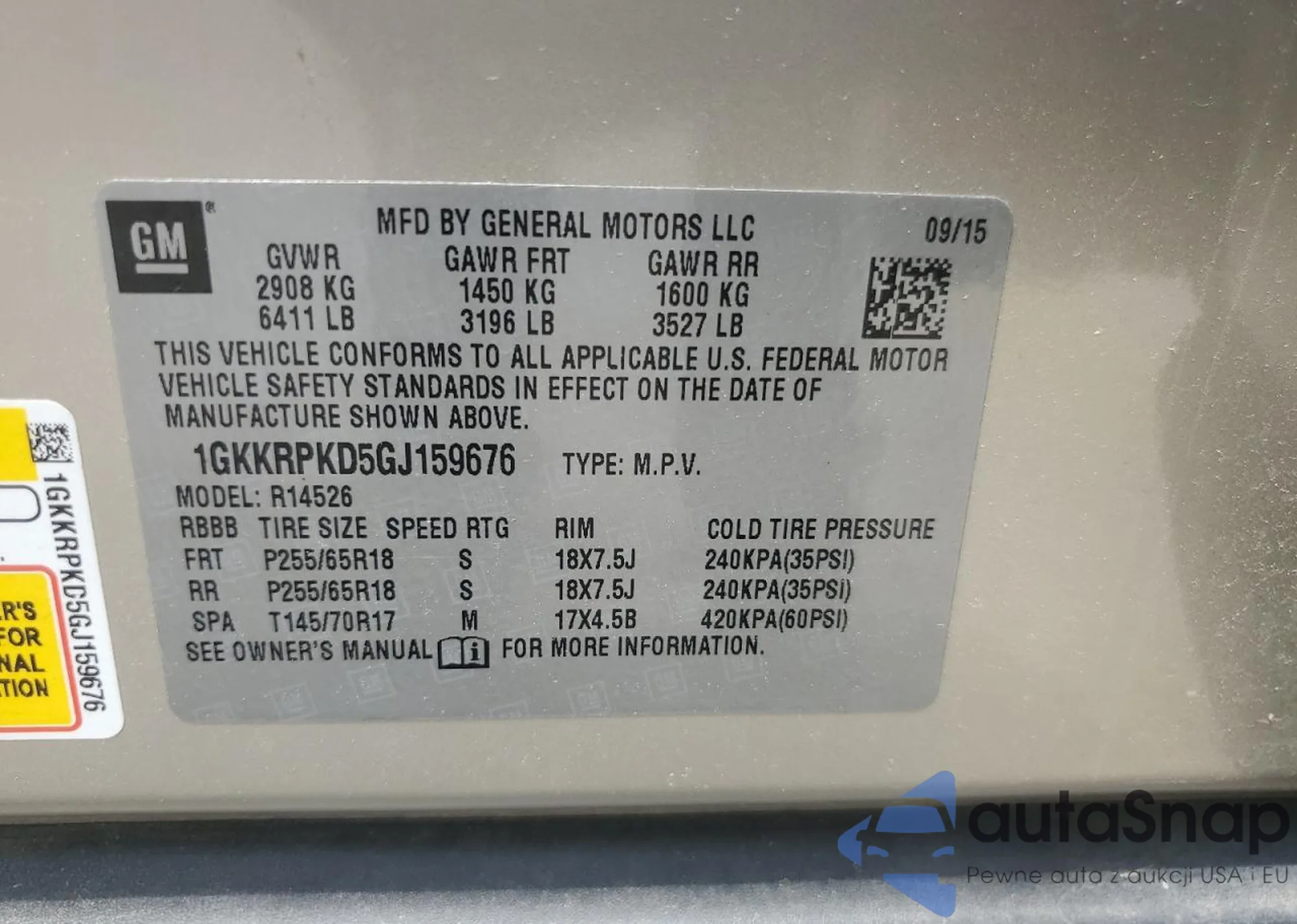 VIN: 1GKKRPKD5GJ159676