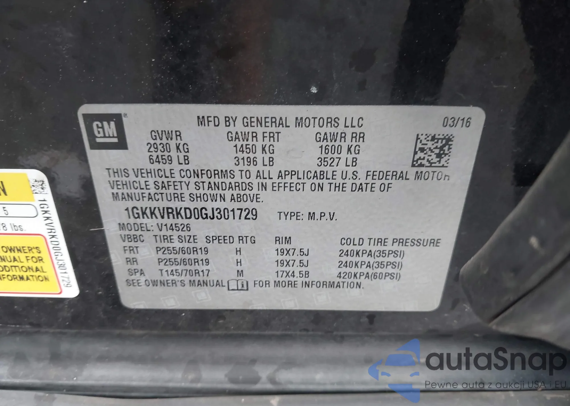 VIN: 1GKKVRKD0GJ301729