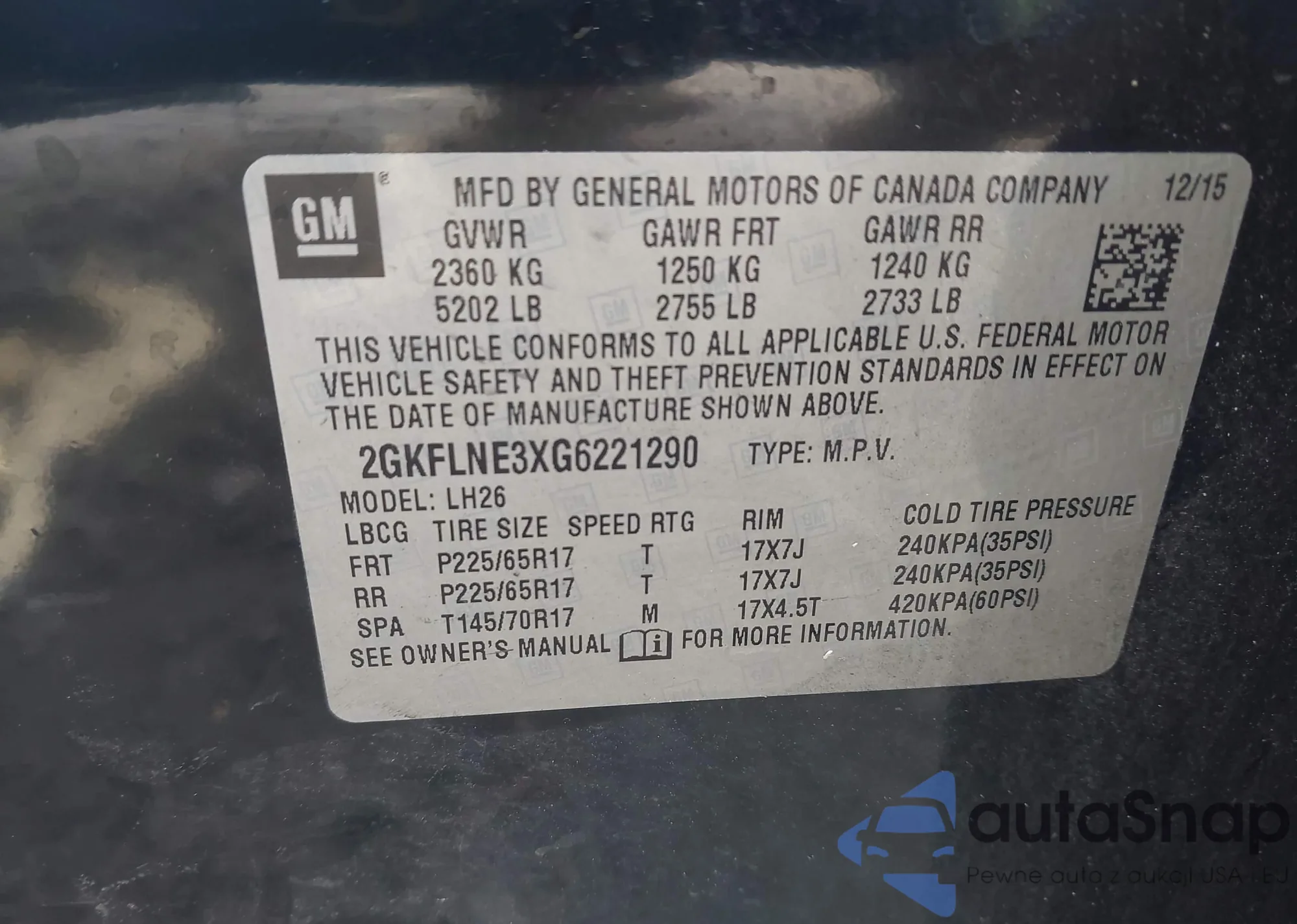 VIN: 2GKFLNE3XG6221290