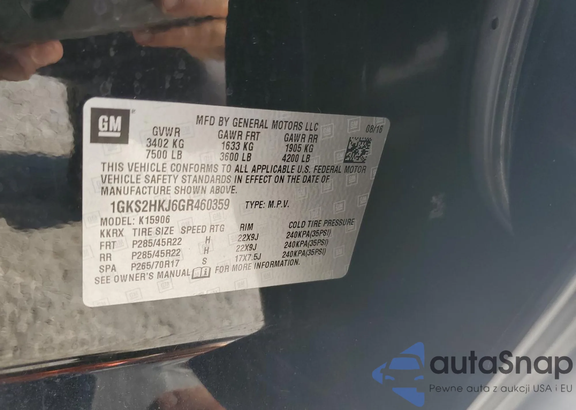 • VIN: 1GKS2HKJ6GR460359
