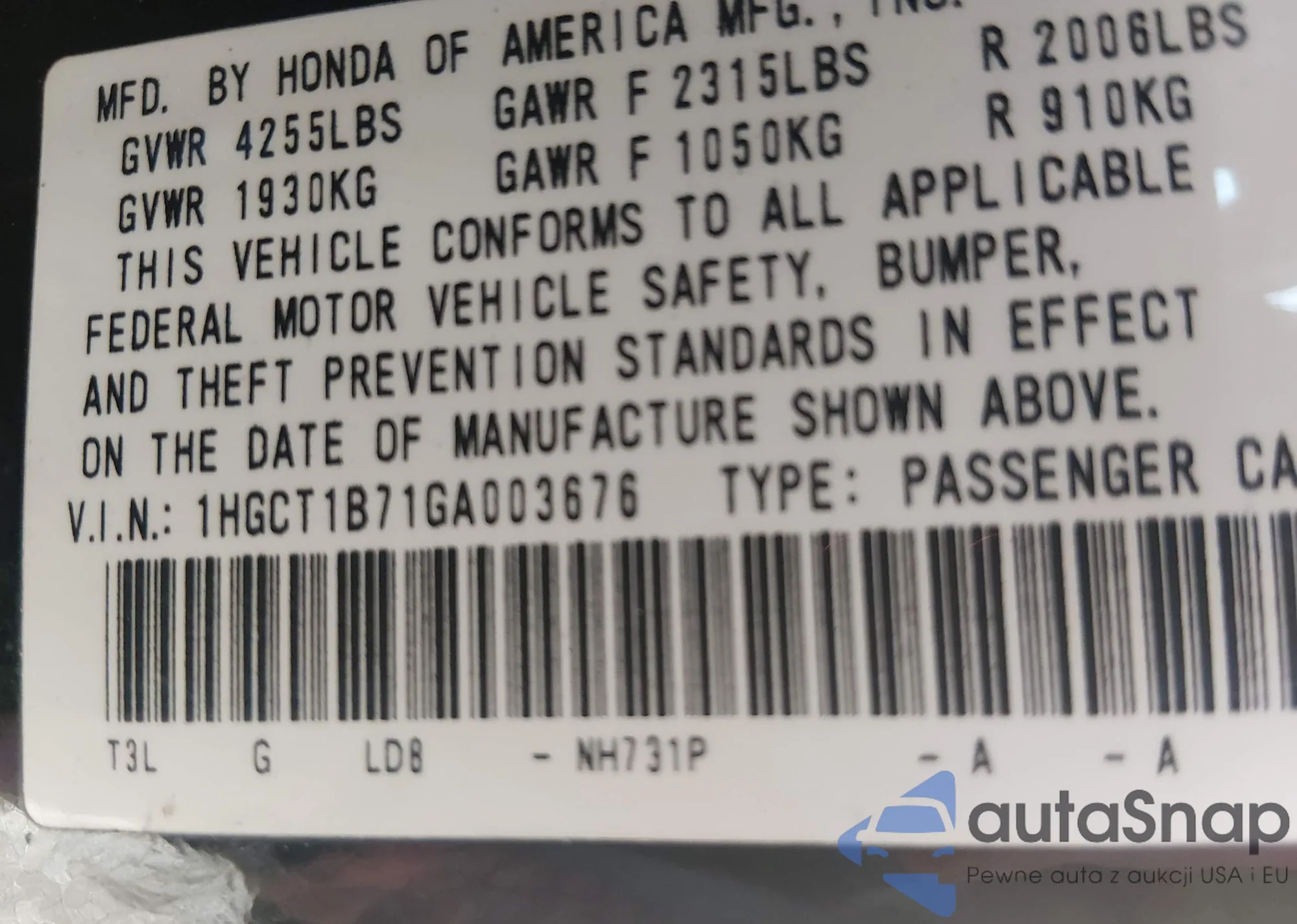 Samochód Honda Accord 2016 (VIN 1HGCT1B71GA003676) nie był wcześniej licytowany. Dokumenty są czyste, przebieg odpowiada lub jest niższy niż średnia rynku. Sprzedaje go firma ubezpieczeniowa – polecamy zakup. Dostawa do portu zajmie ok. 6–8 tygodni.