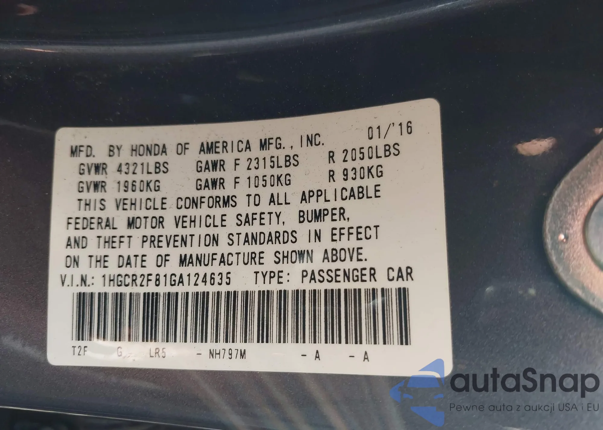 VIN: 1HGCR2F81GA124635