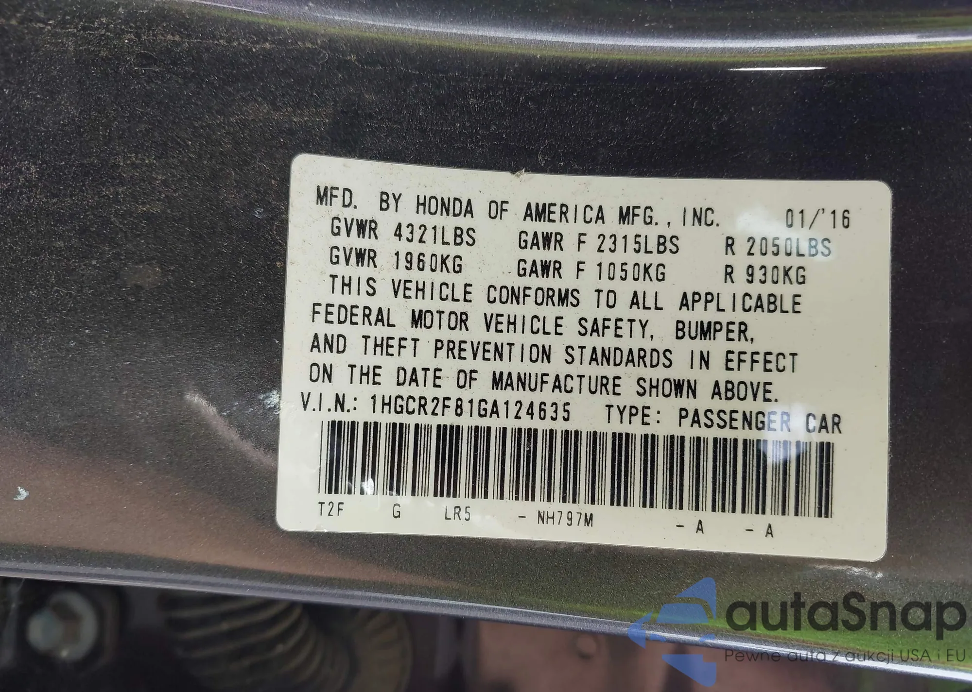 VIN: 1HGCR2F81GA124635