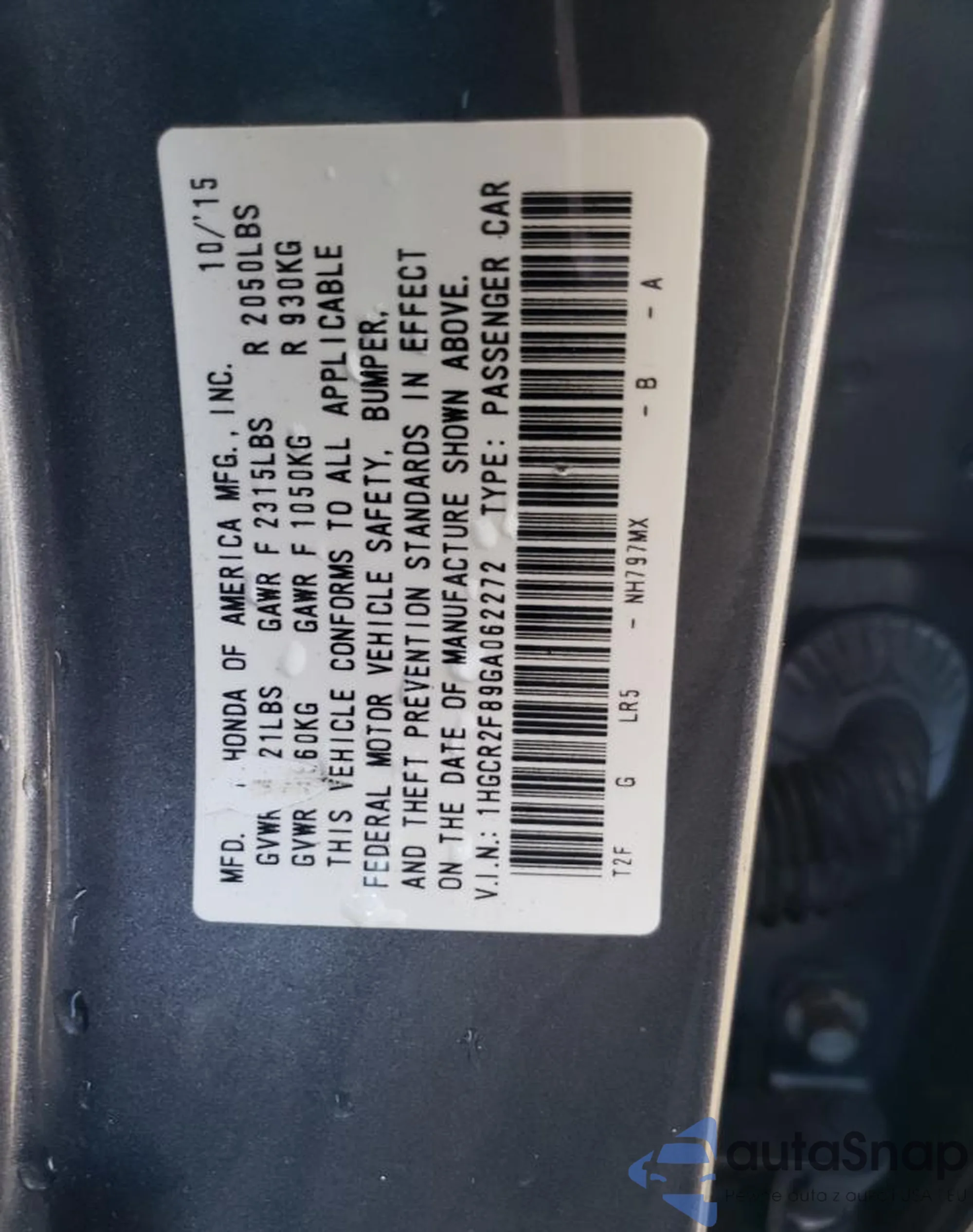 • VIN: 1HGCR2F89GA062272