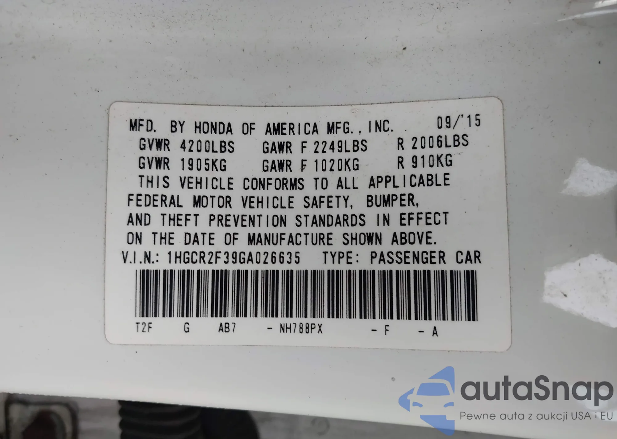 VIN: 1HGCR2F39GA026635