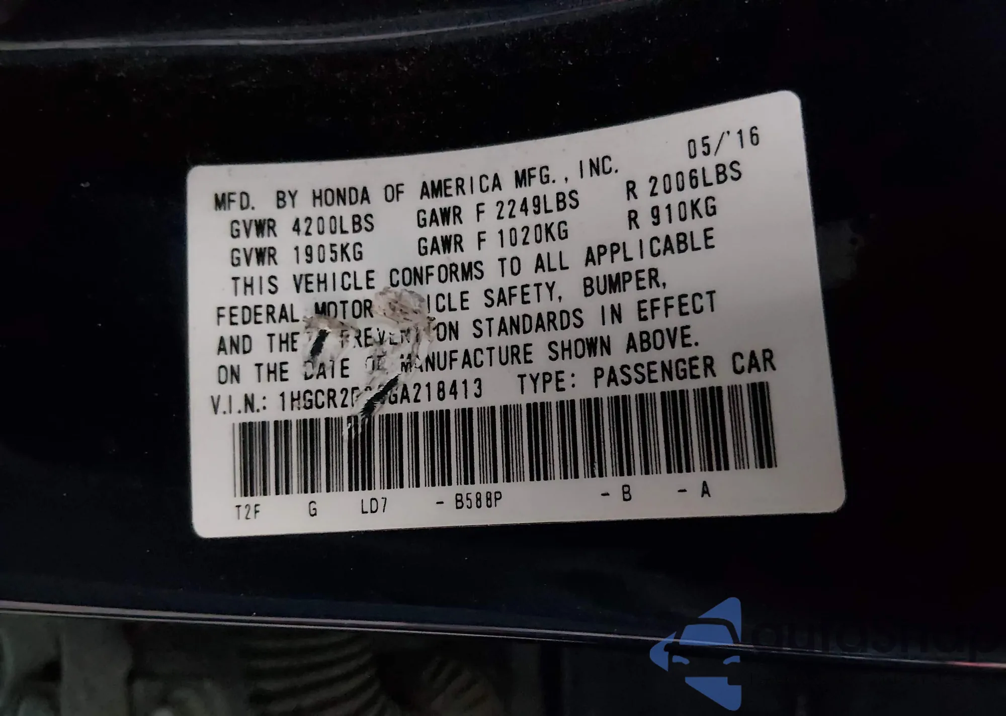 VIN: 1HGCR2F39GA218413