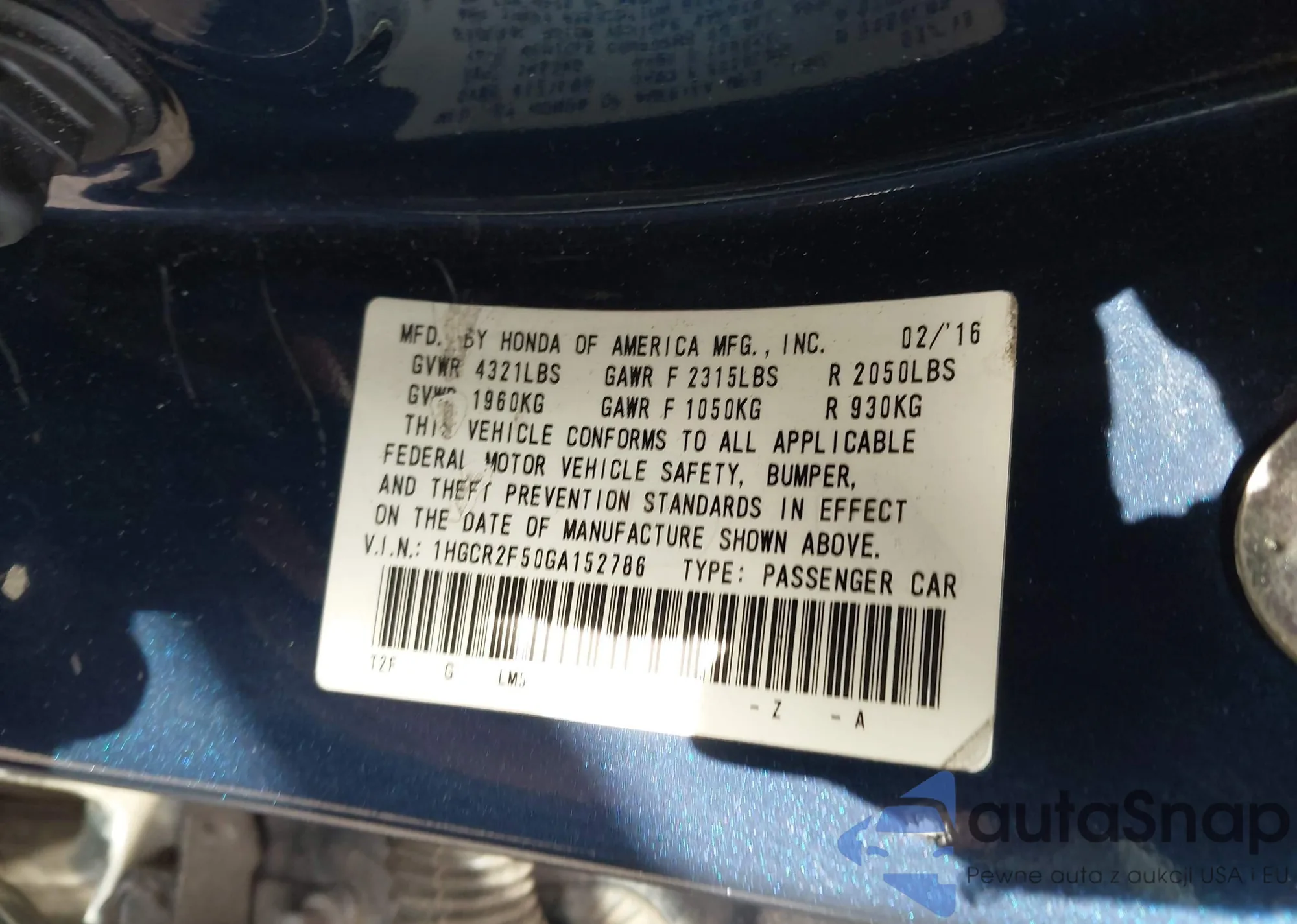 VIN: 1HGCR2F50GA152786